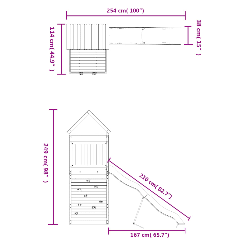 - Sturdy and stable frame: The wooden frame of the playset ensures sturdiness and stability.