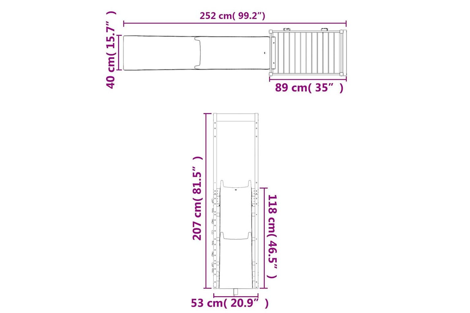 - Total width of the slide: 40 cm