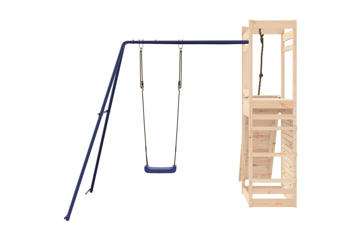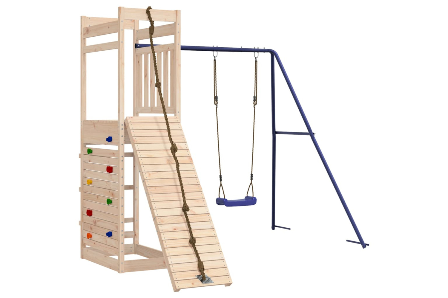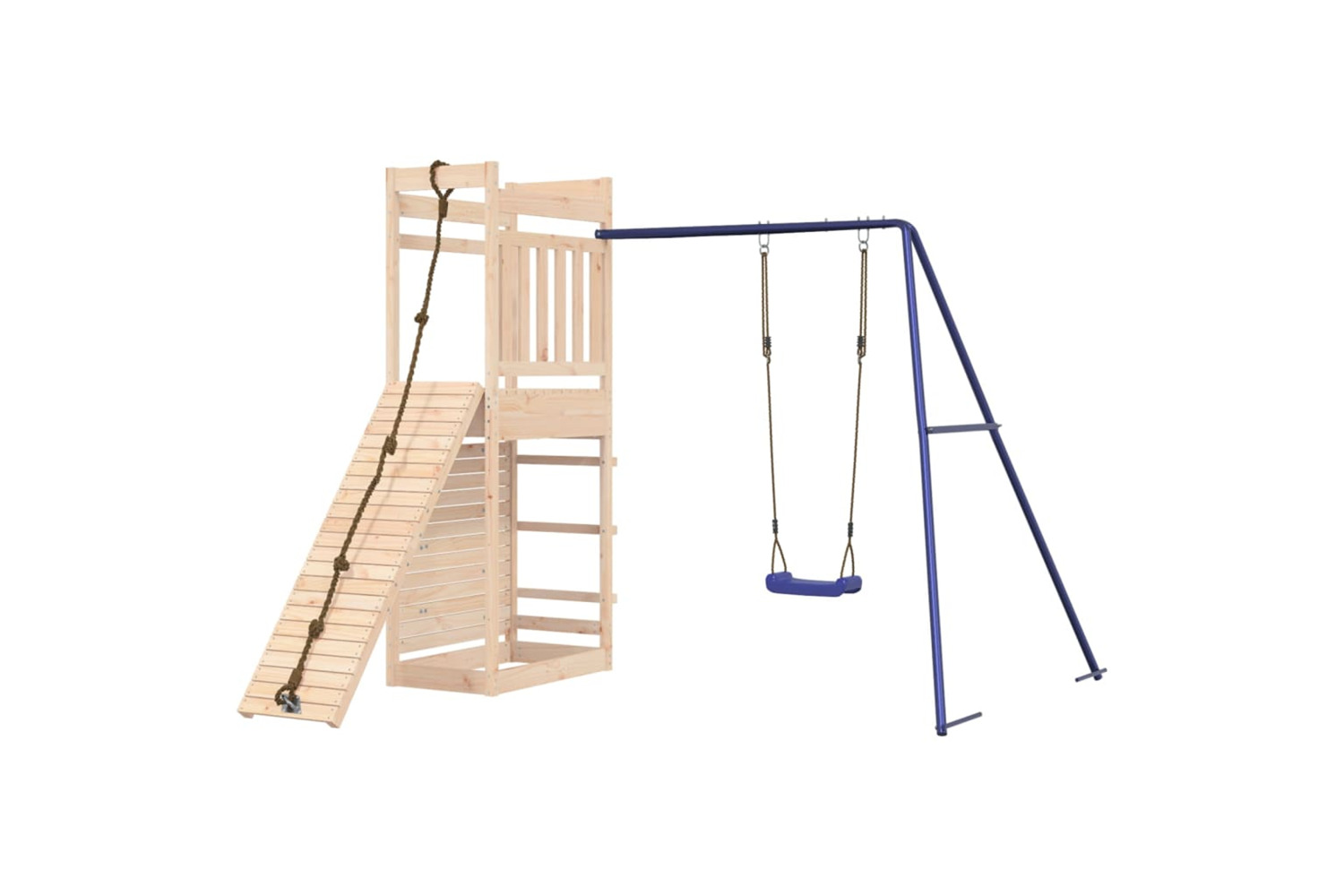- Multi-activity centres: The wooden playset features a 118 cm height platform and stands out with its climbing wall with a rope, a rockwall, a single swing set as well as a sandpit. Your little ones can also invite their friends to join the fun.