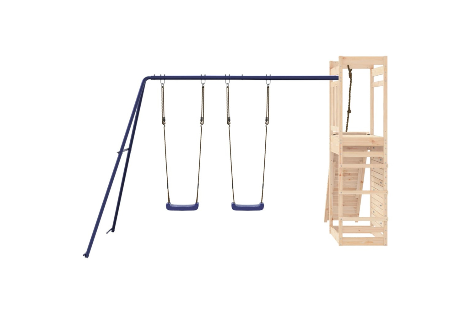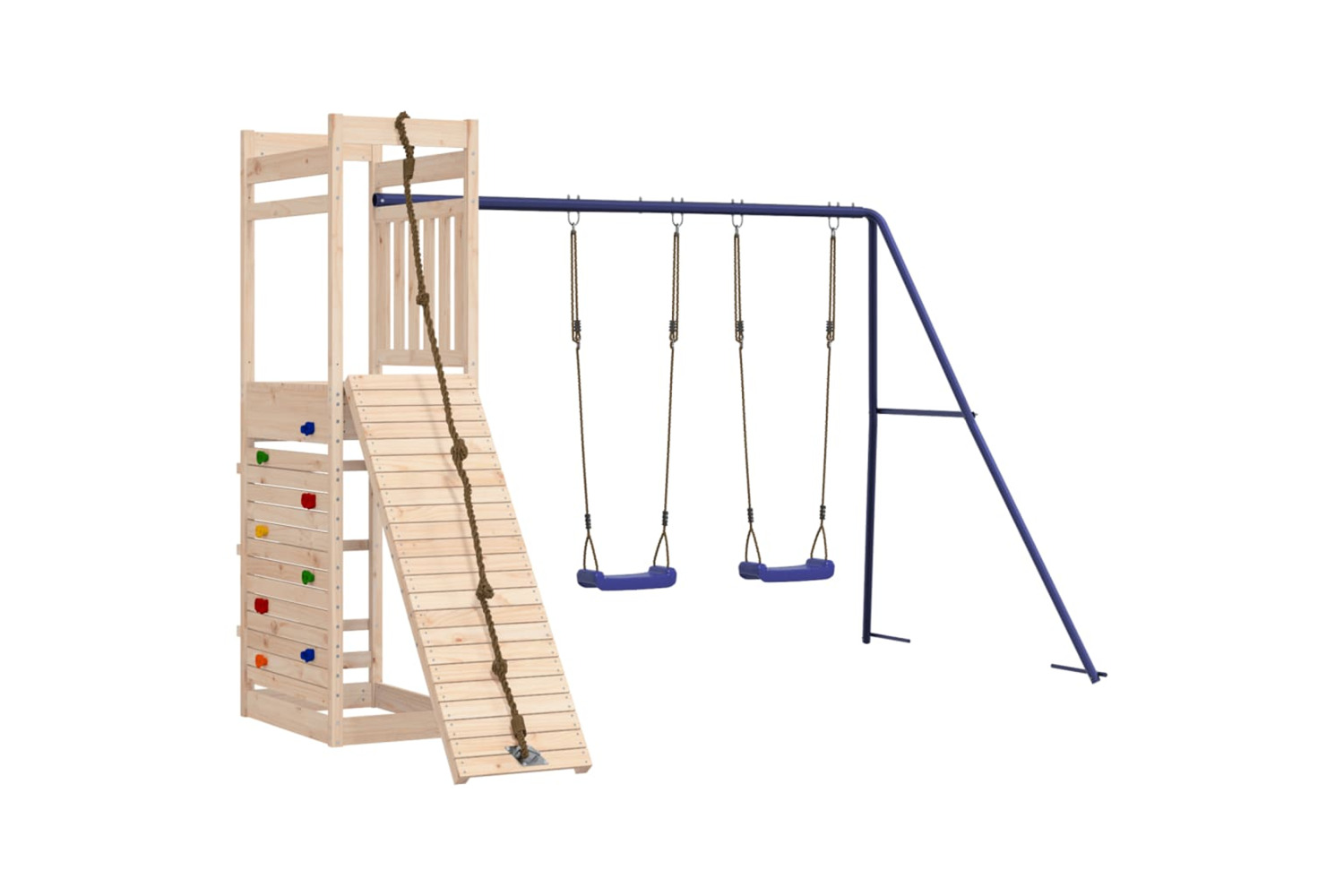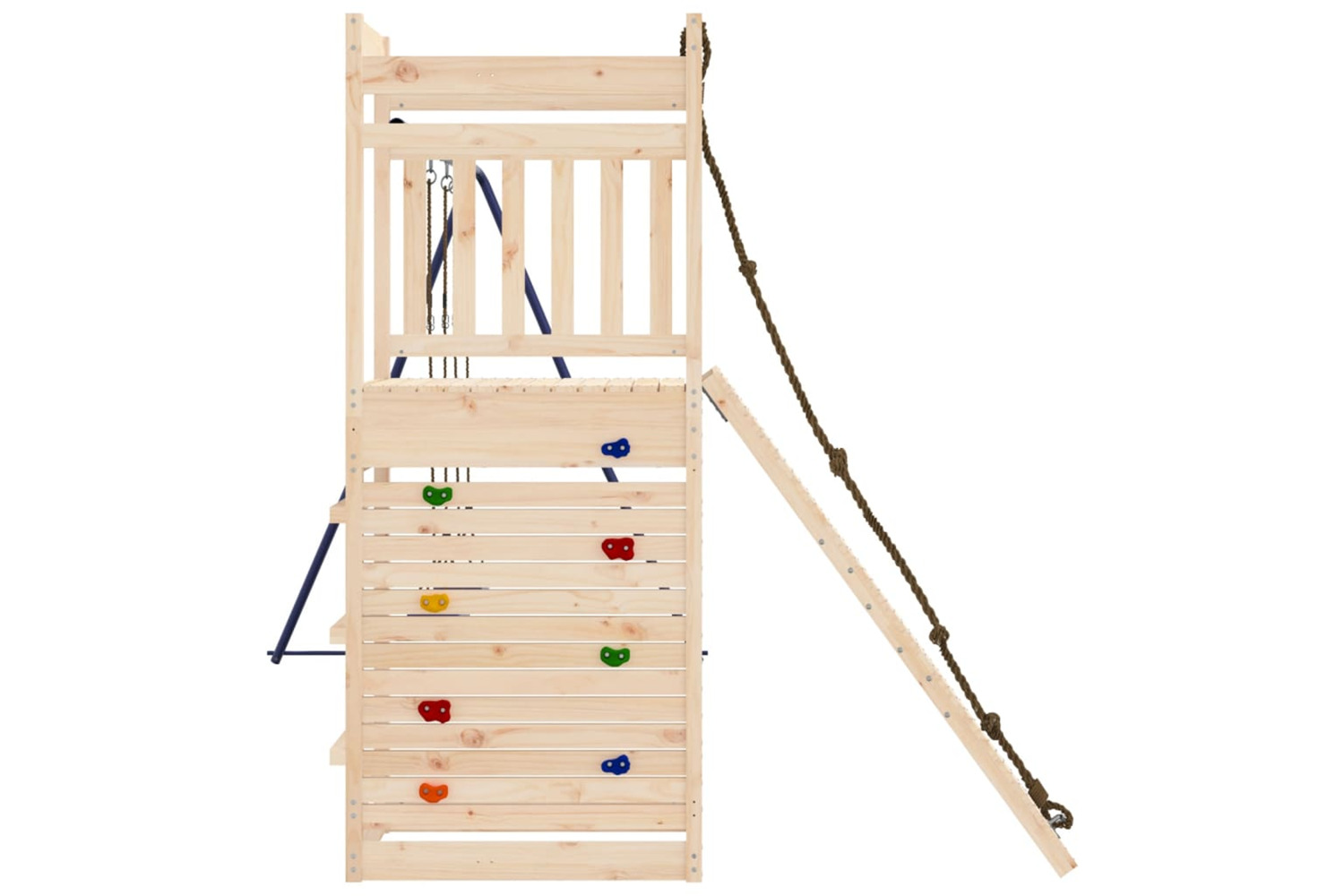 - Multi-activity centres: The wooden playset features a 118 cm height platform and stands out with its climbing wall with a rope, a rockwall, a double swing set as well as a sandpit. Your little ones can also invite their friends to join the fun.