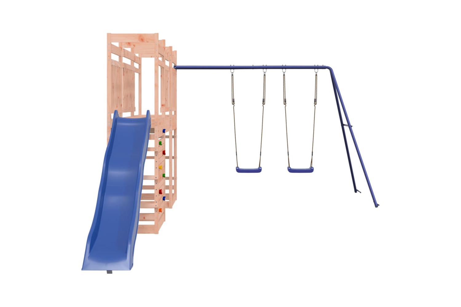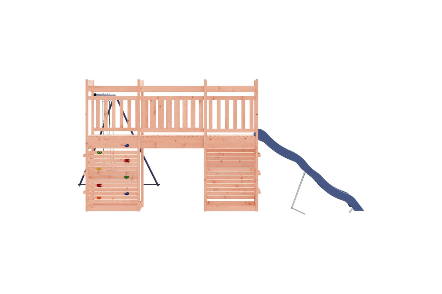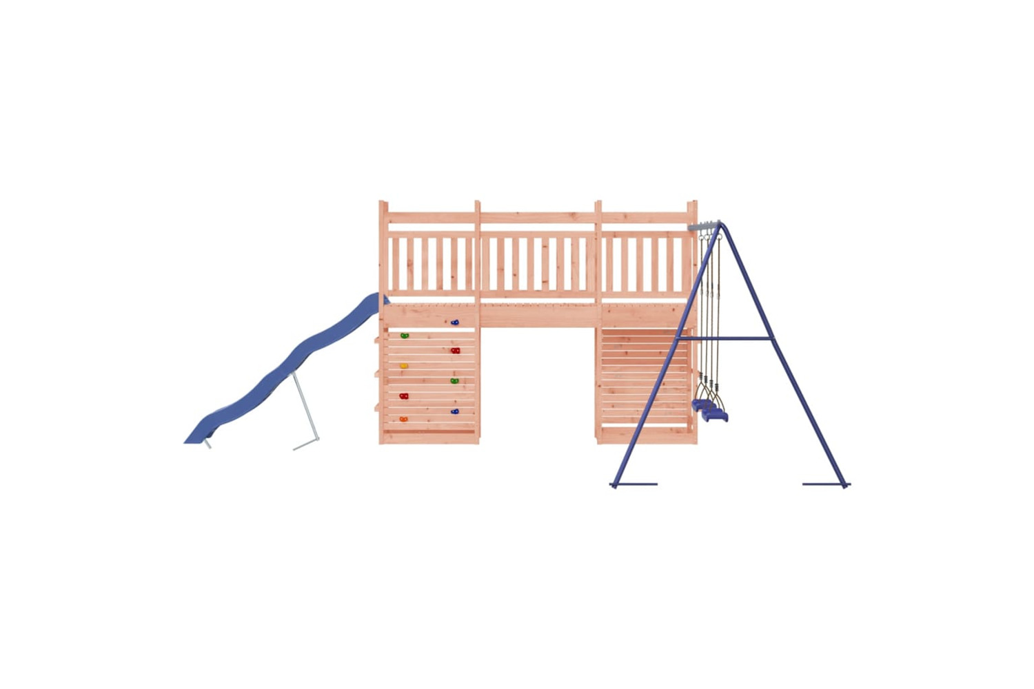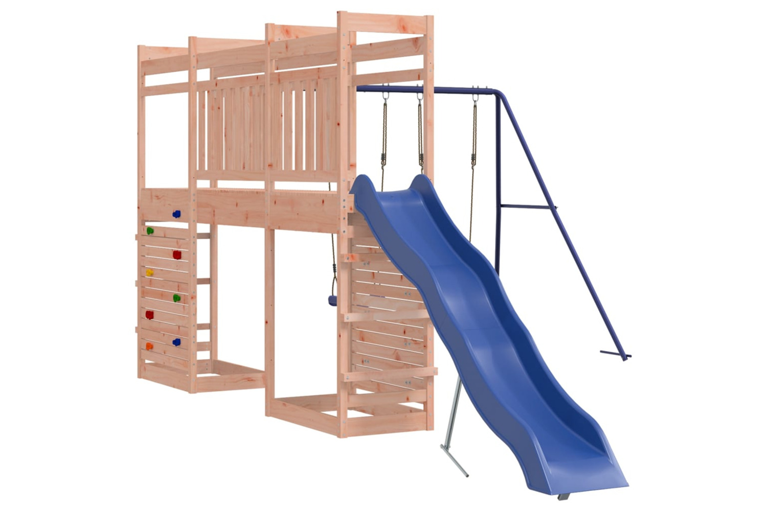 - Multi-activity centres: The wooden playset features a 118 cm height platform and stands out with its wave slide, a rockwall, a double swing set as well as sandpits. Your little ones can also invite their friends to join the fun.