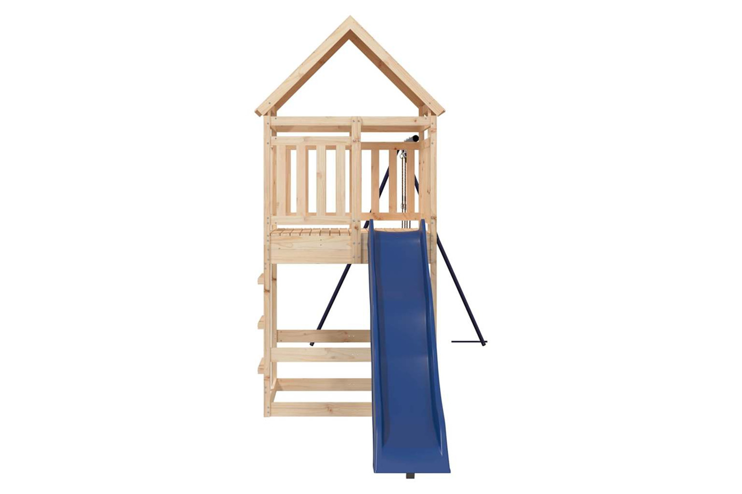 - Durable material: This playset is made of solid pine wood. Solid pine wood is a beautiful natural material. Pine wood has a straight grain, and the knots give the material its signature, rustic look.