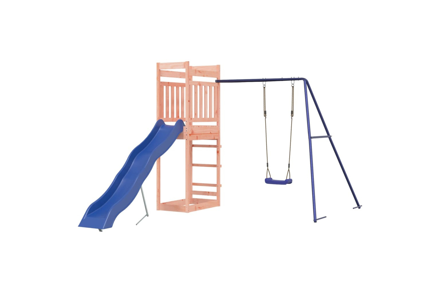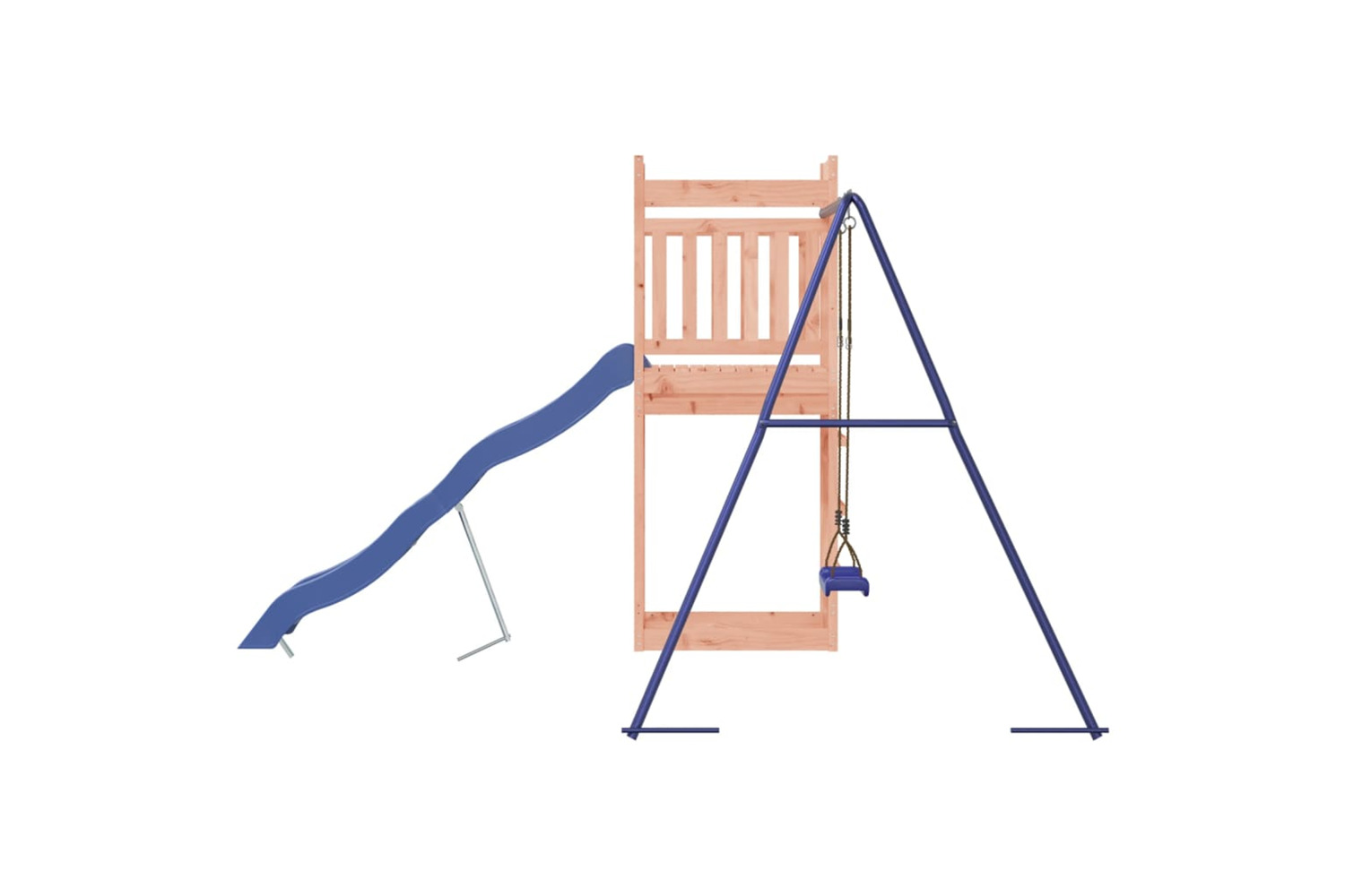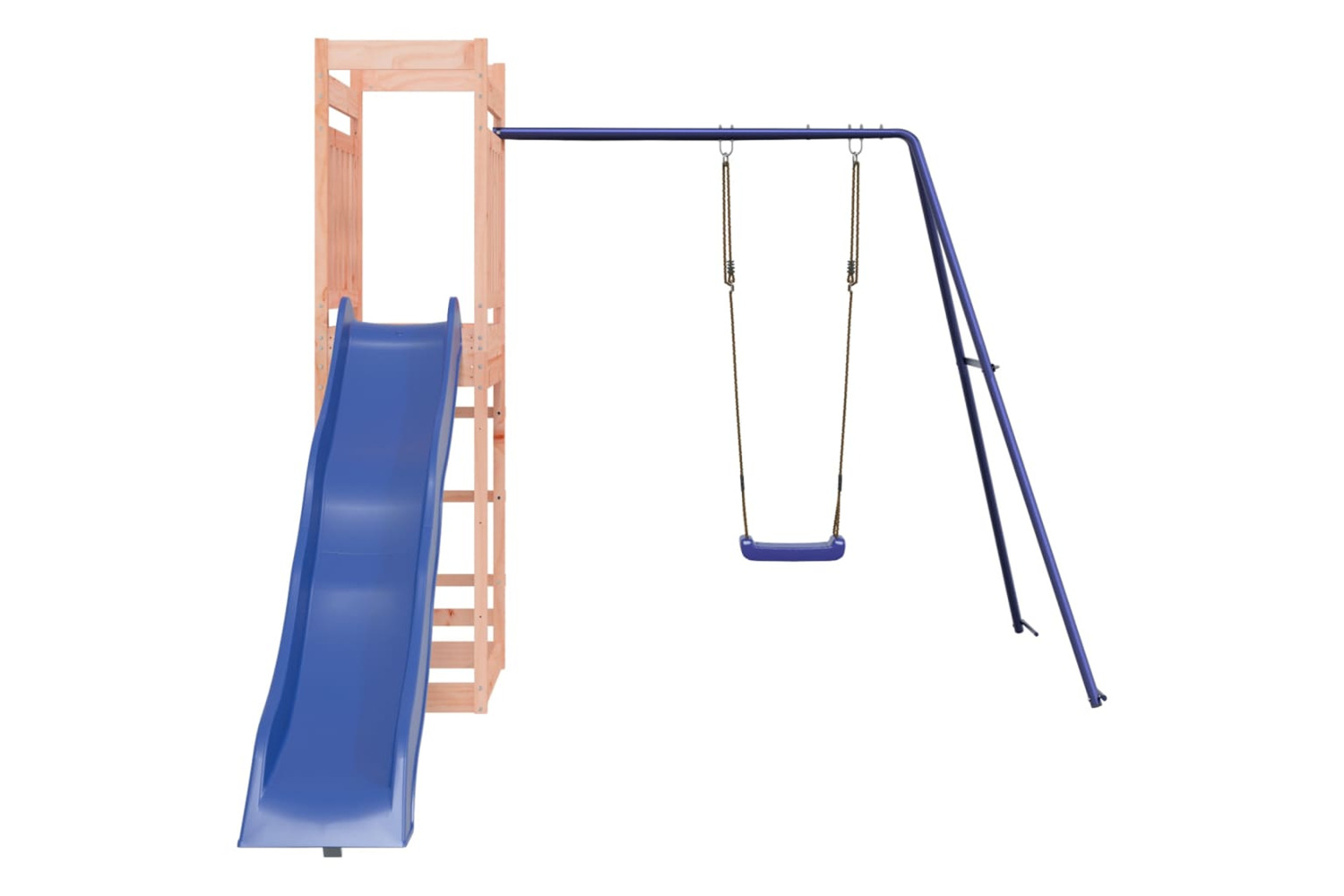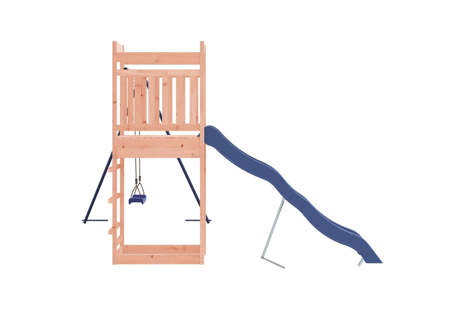 - Durable material: This playset is made of solid douglas wood. Solid douglas wood is a highly durable wood that works well for outdoors. Douglas wood is also strong enough to work with minimum care, even under the influence of the weather.