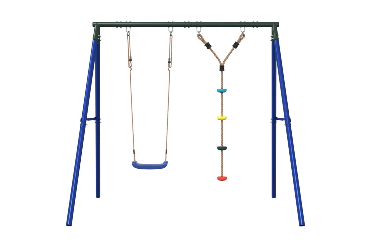 • Fun activity centre: This children's swing set features 2 different playing options with a swing seat and a disc rope swing. Thus, kids can swing and climb to their heart's content.