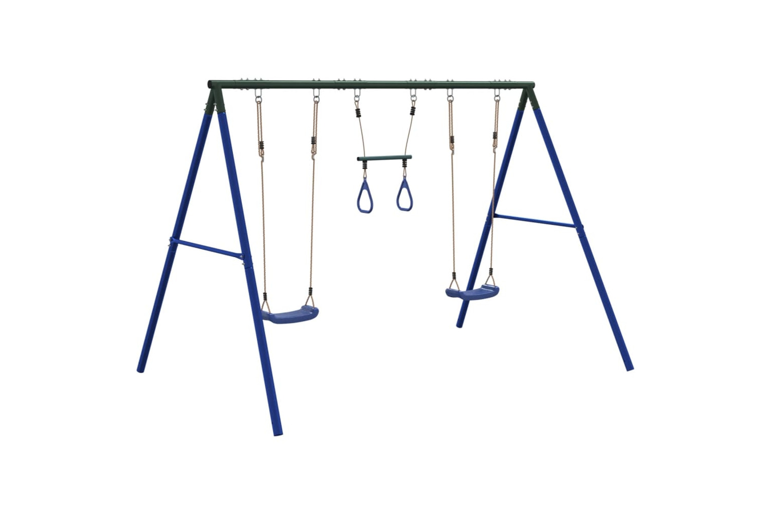 - Fun activity centre: This children's swing set features 2 different playing options with two swing seat and a trapeze bar with gym rings. Thus, kids can swing and climb to their heart's content.