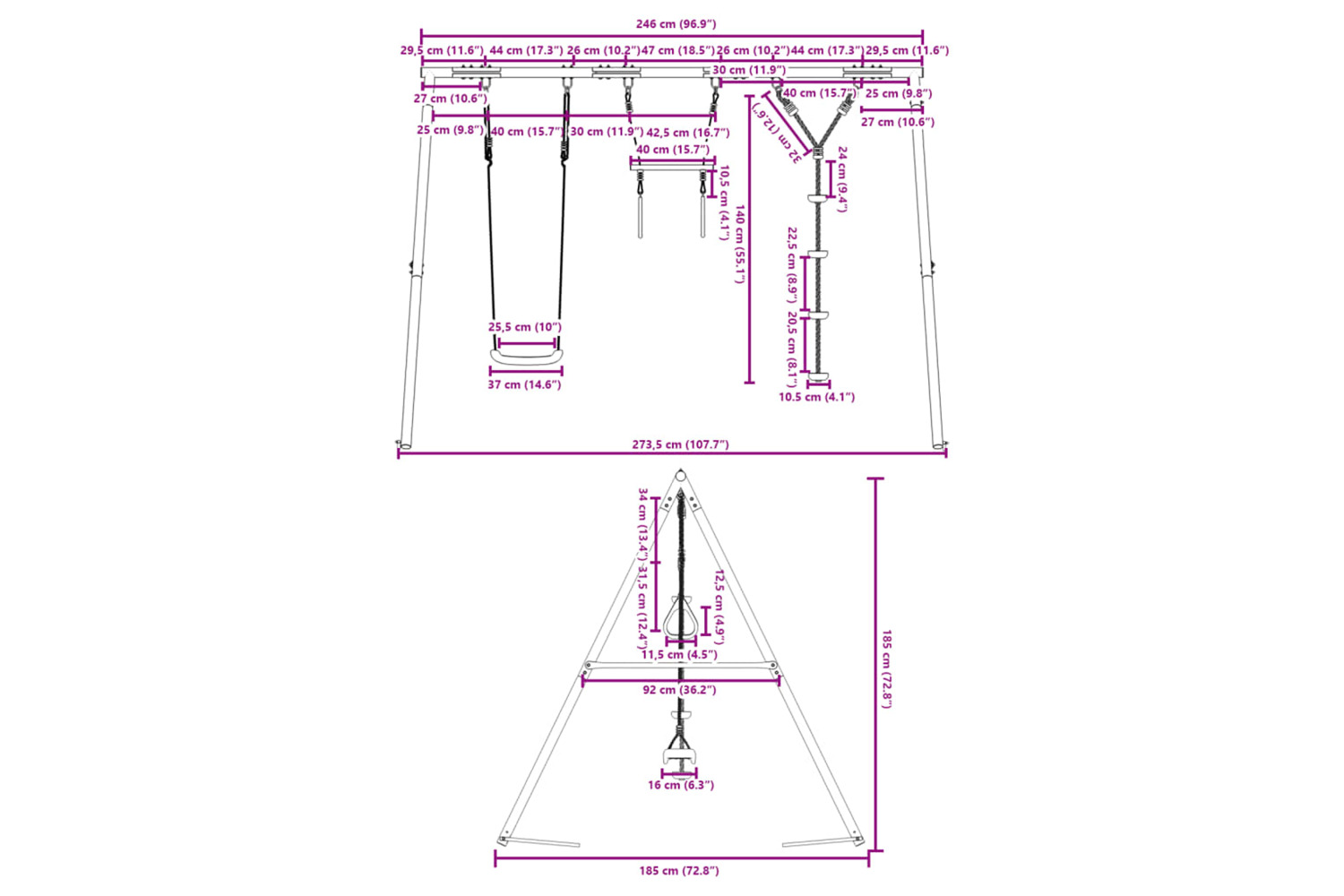 - For safety, please ensure that each swing is for one child at a time.