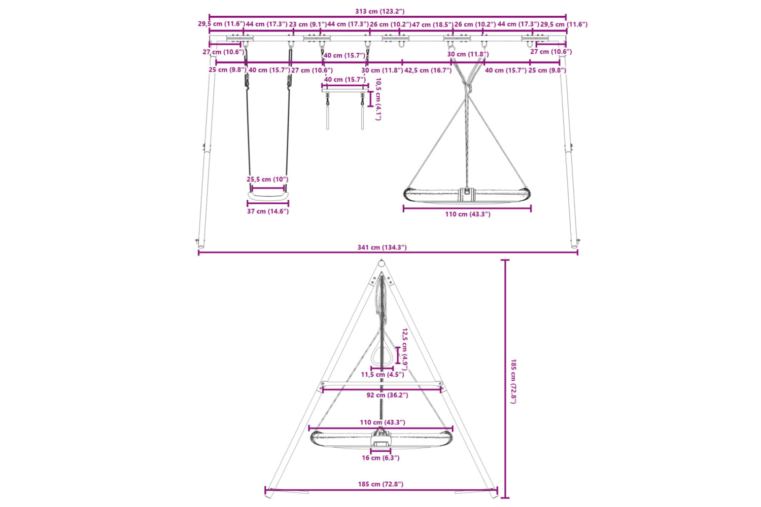 - Swing seat diameter: 110 cm