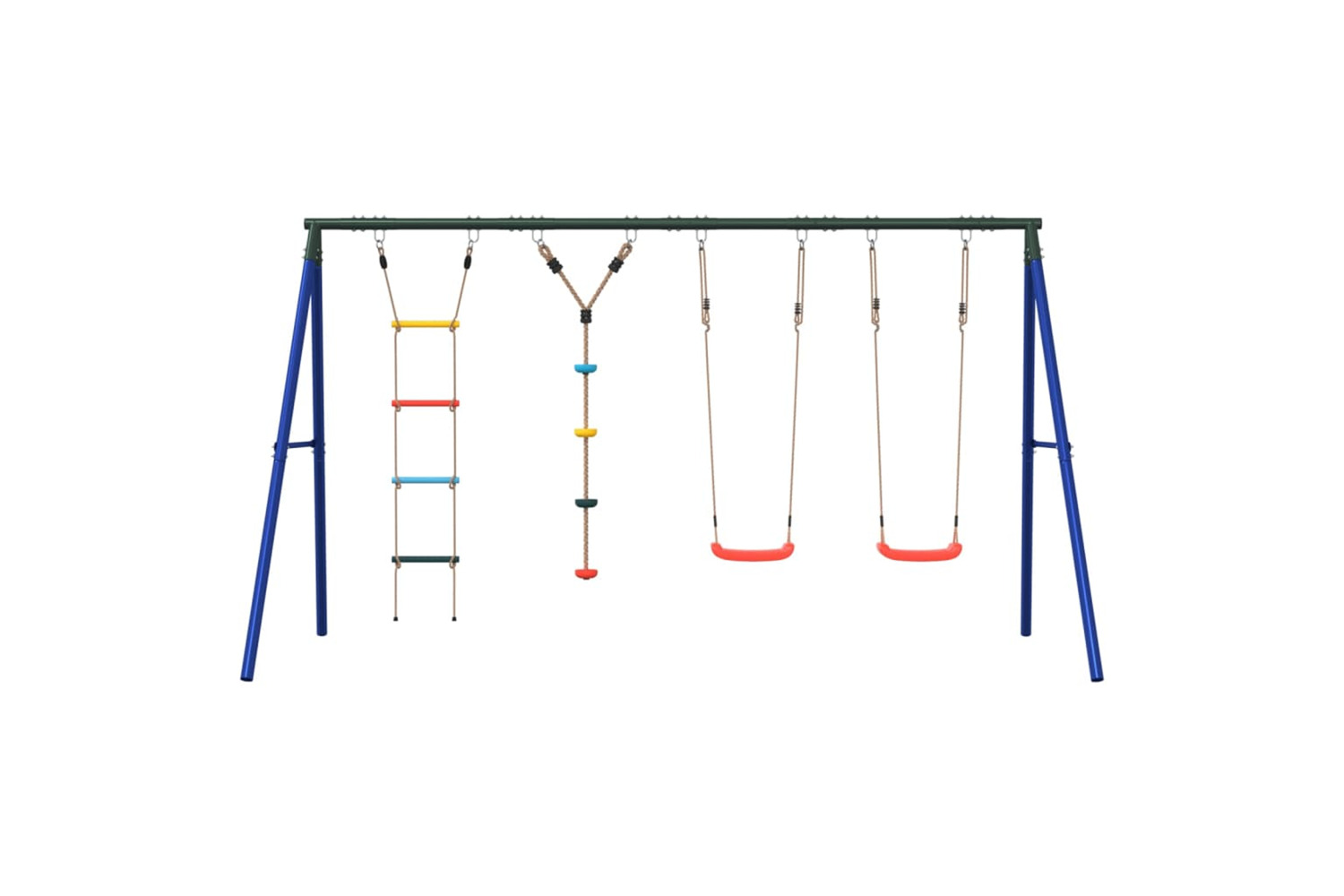 • Fun activity centre: This children's swing set features 3 different playing options with two swing seats, a disc rope swing, and a climbing ladder. Thus, kids can swing and climb to their heart's content.