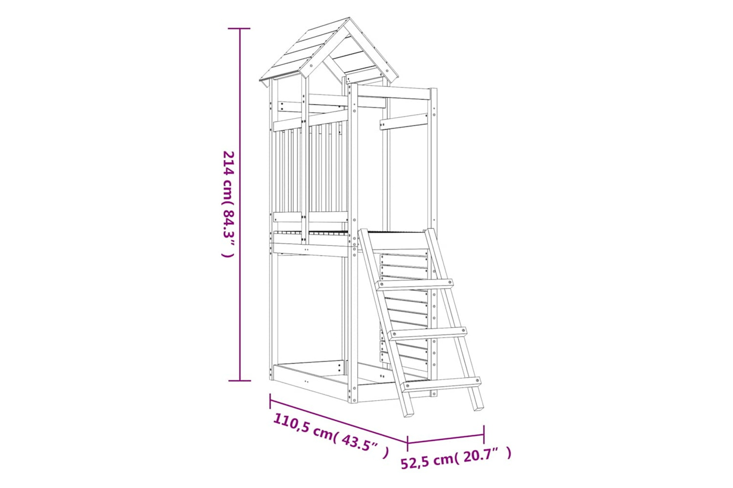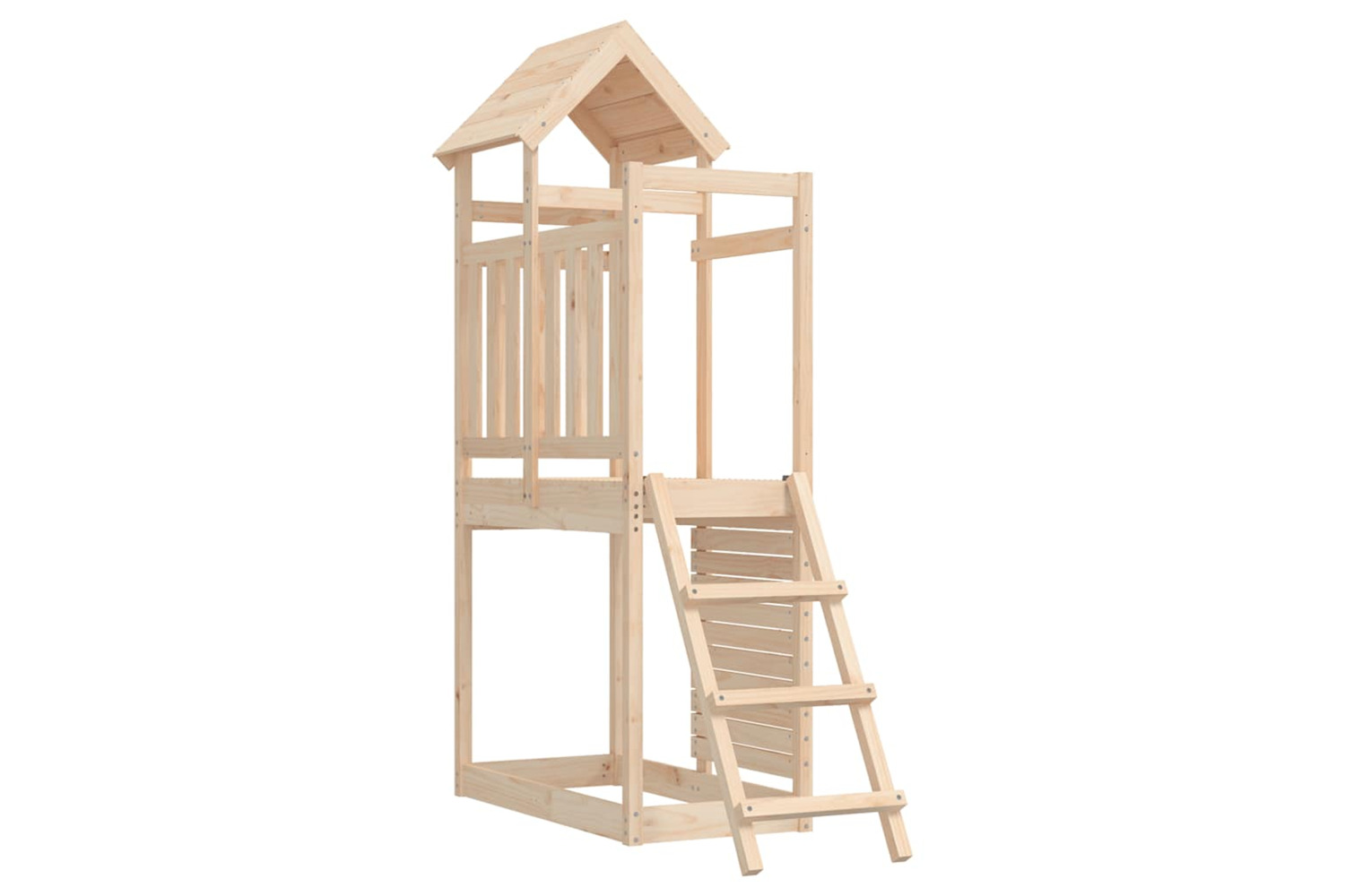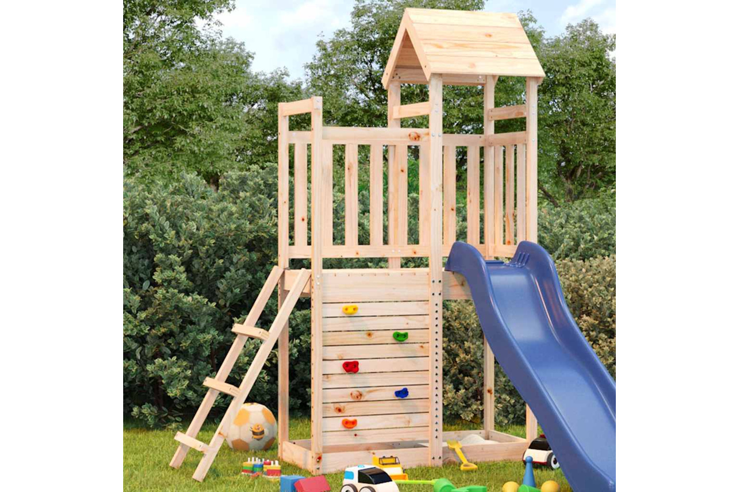 - Solid pine wood: This playground is made of solid pine wood. Solid pine wood is a beautiful natural material. Pine wood has a straight grain, and the knots give the material its signature, rustic look.