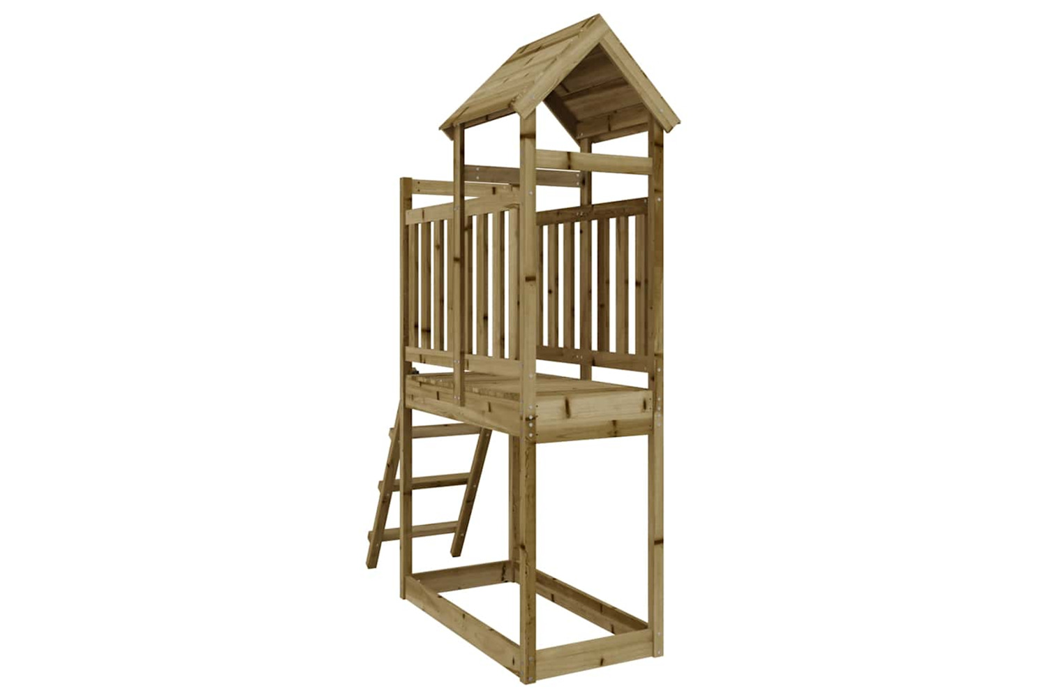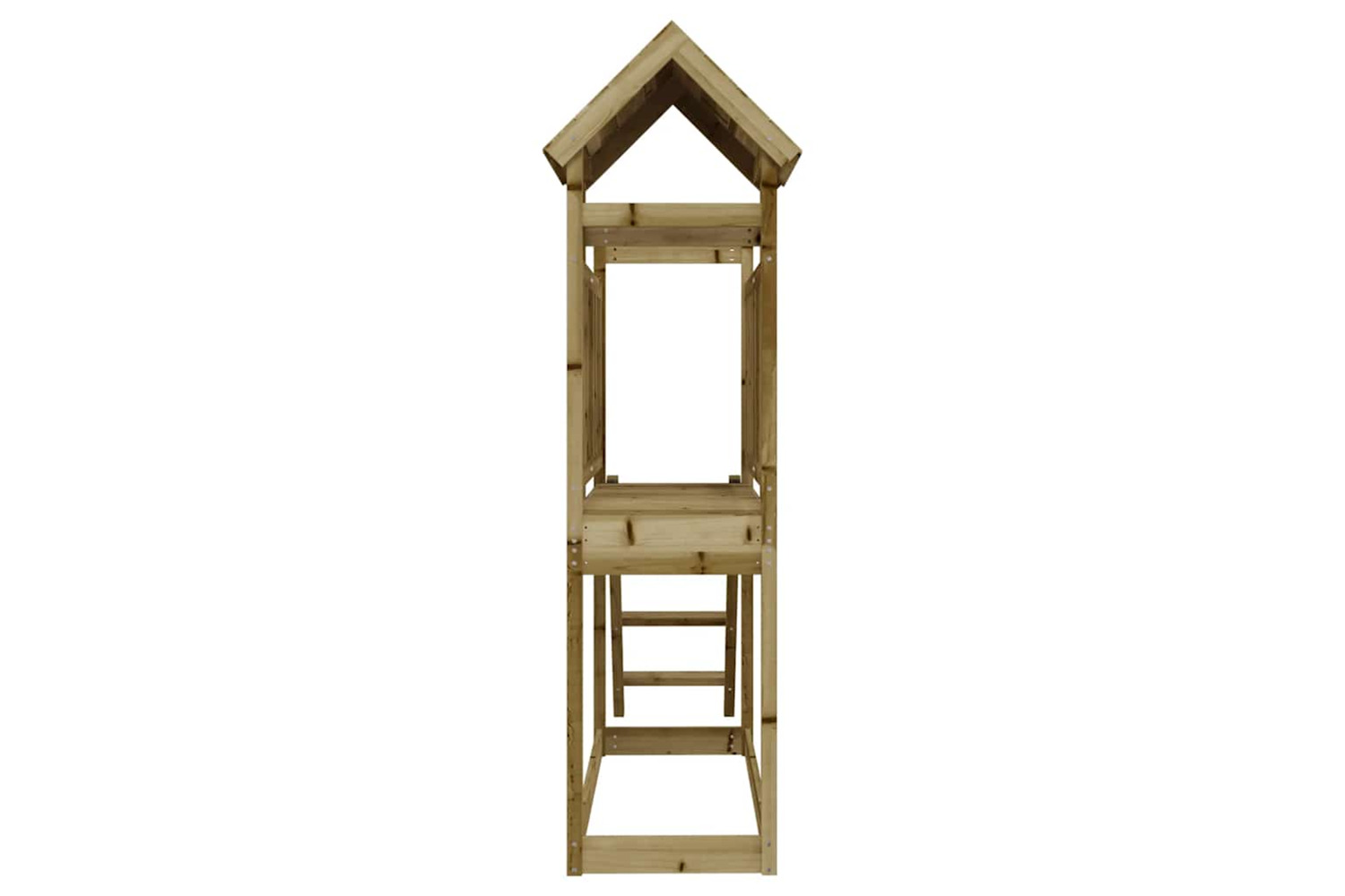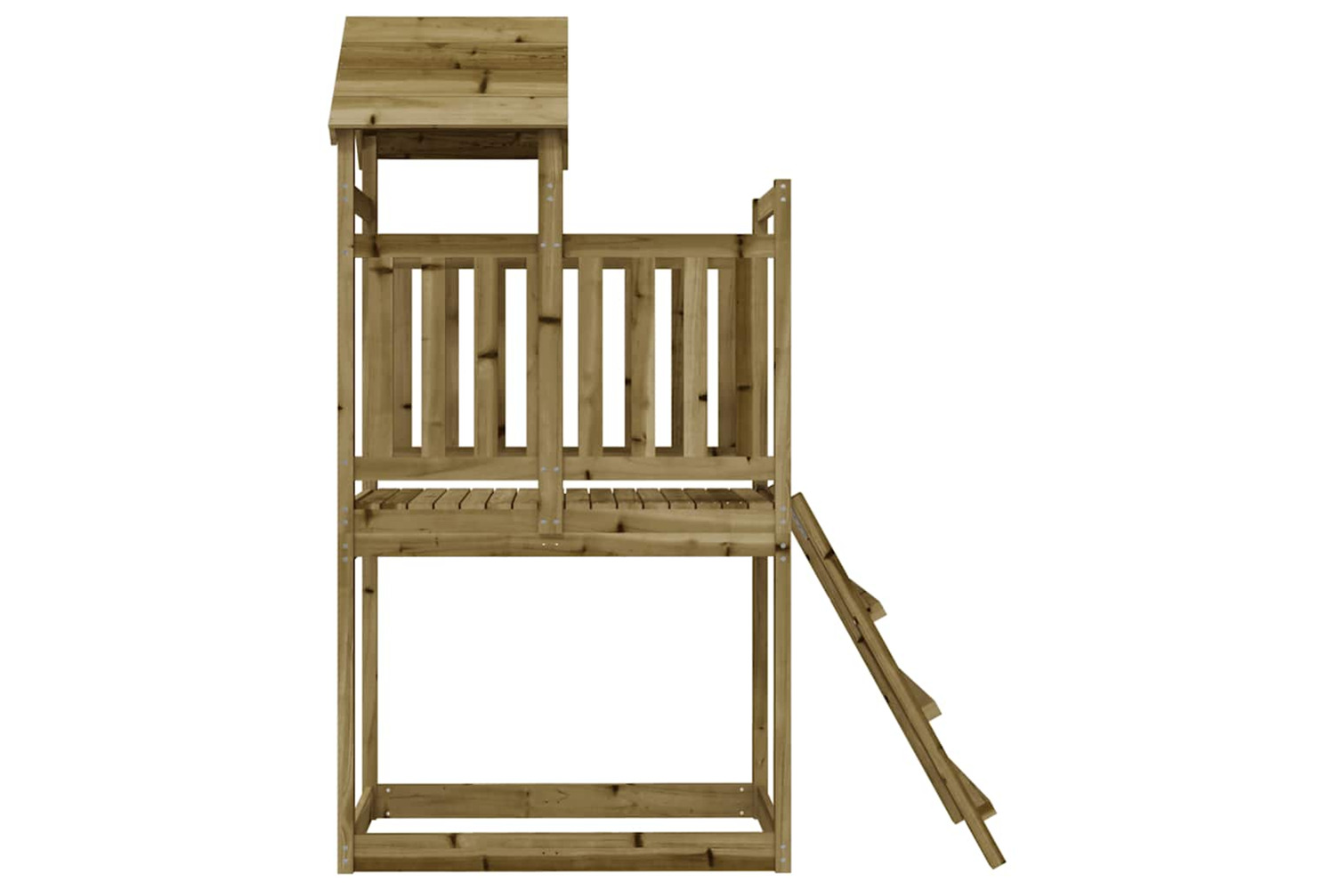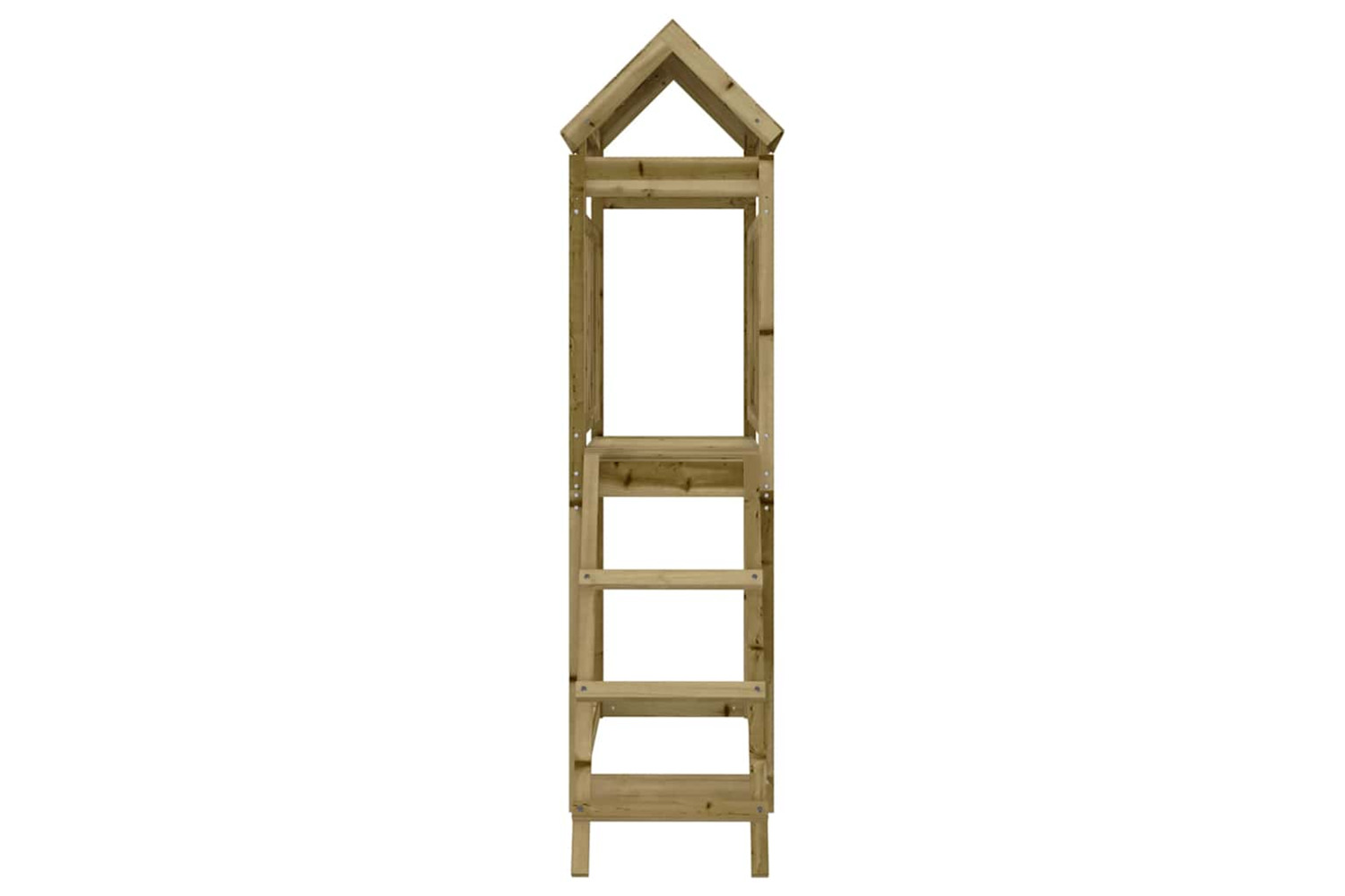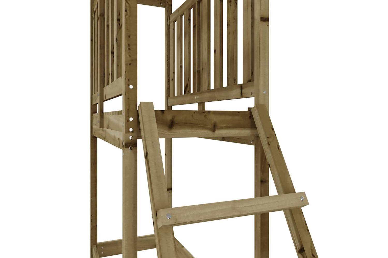 - Impregnated wood: This playground is made of vacuum pressure impregnated pinewood. Solid pine wood is a beautiful natural material. Pine wood has a straight grain, and the knots give the material its signature, rustic look. Impregnation is a preservation process that is carried out by using autoclaves. The pressure-treatment increases resistance to decay and weather.