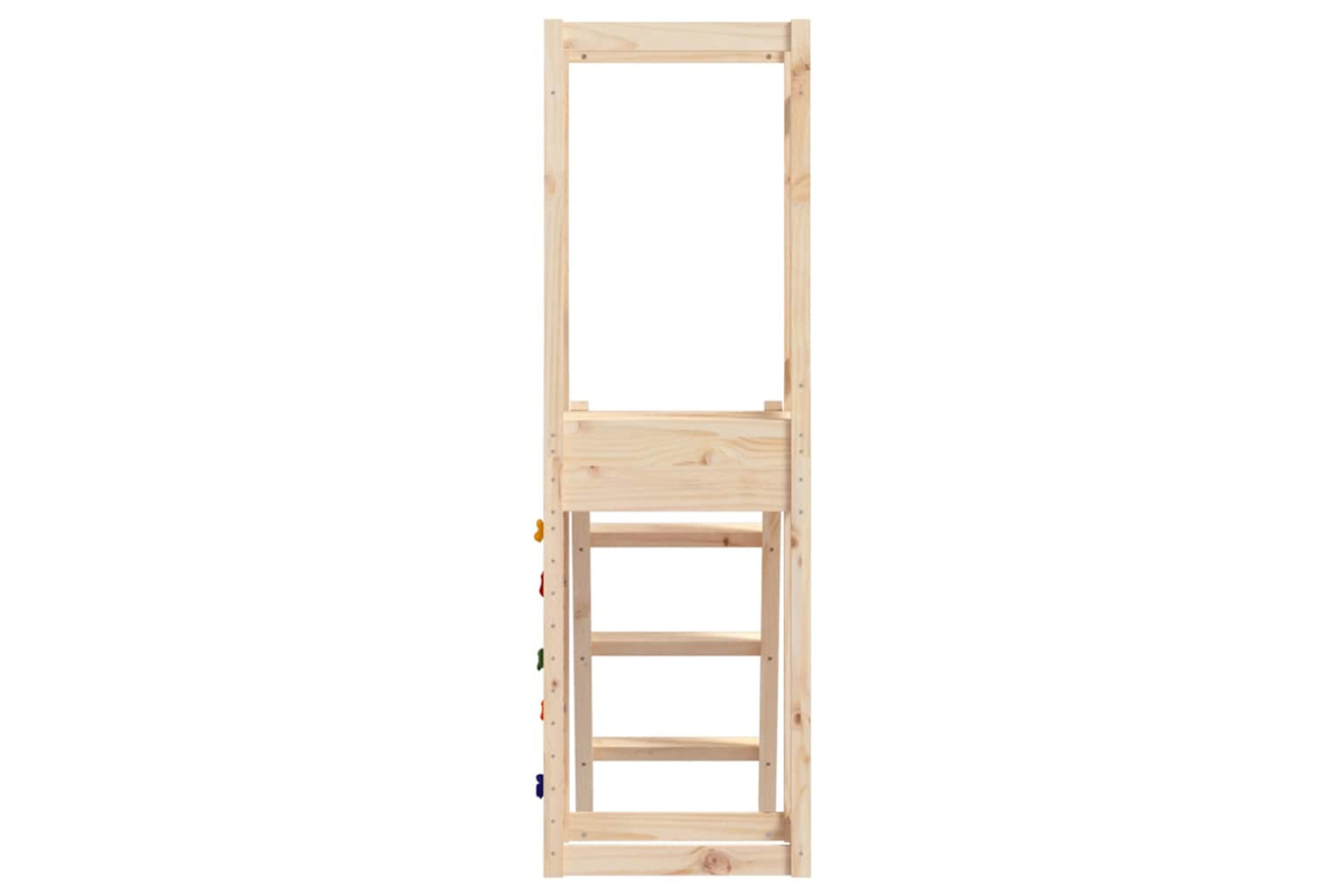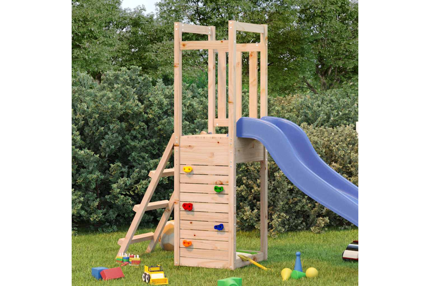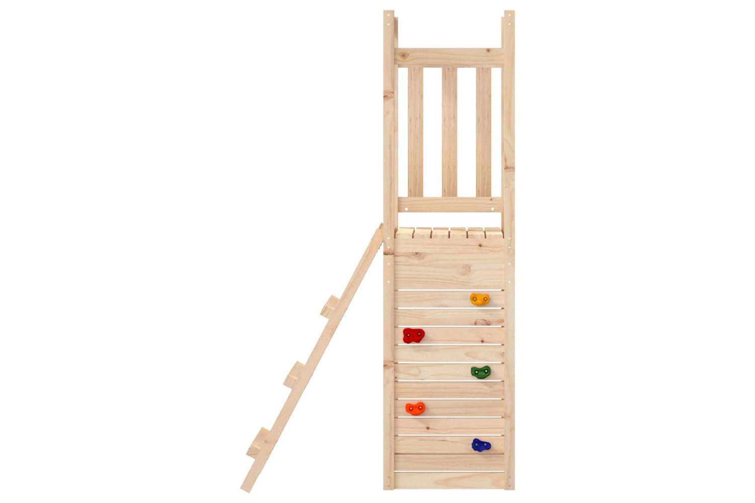 - Solid pine wood: This playground is made of solid pine wood. Solid pine wood is a beautiful natural material. Pine wood has a straight grain, and the knots give the material its signature, rustic look.