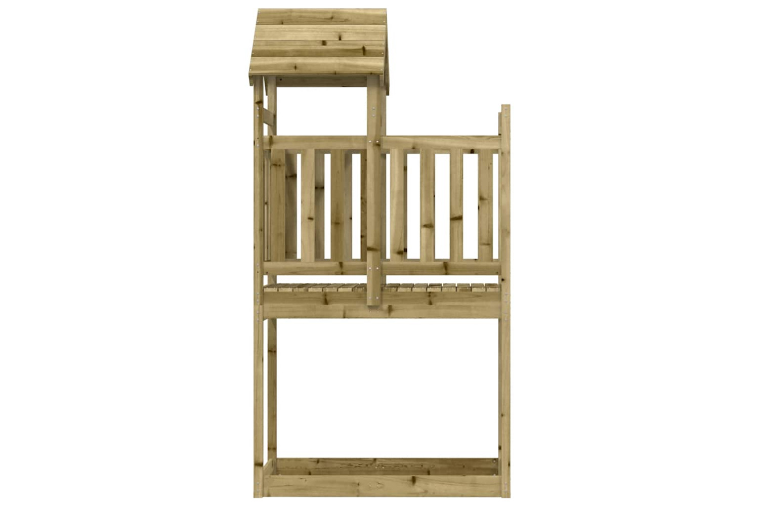 - Impregnated wood: This playground is made of vacuum pressure impregnated pinewood. Solid pine wood is a beautiful natural material. Pine wood has a straight grain, and the knots give the material its signature, rustic look. Impregnation is a preservation process that is carried out by using autoclaves. The pressure-treatment increases resistance to decay and weather.