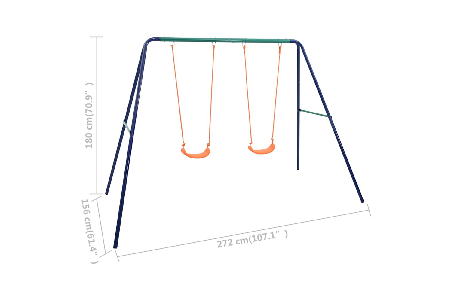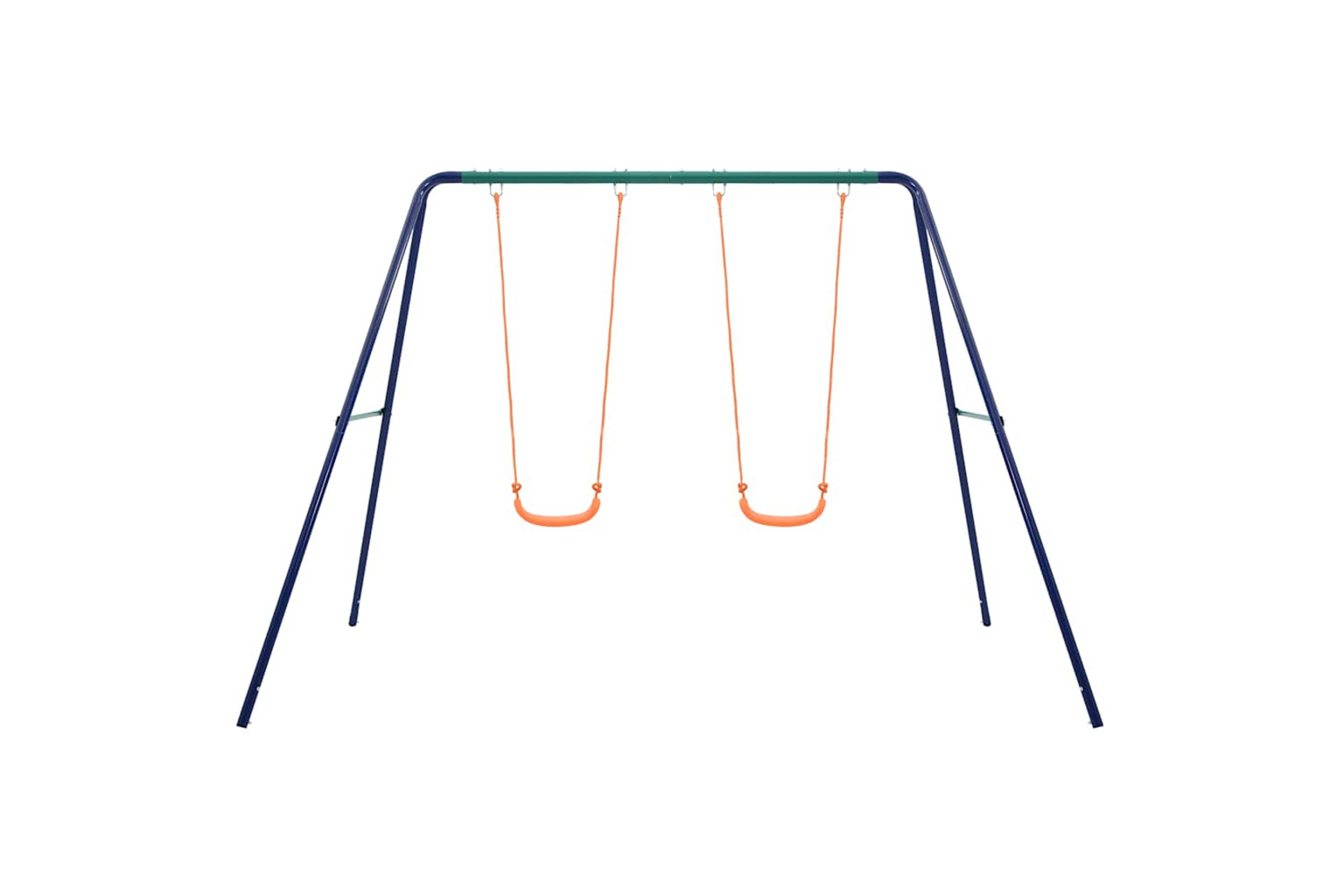 This swing set consists of a sturdy steel A-frame with 2 single swing seats. Thanks to its sturdy steel frame and plastic seats, the set is extremely durable and weather-resistant. It is also easy to assemble. All swings are securely fixed to the sturdy A-frame crossbar with sturdy brackets, bolts, hooks and ropes.