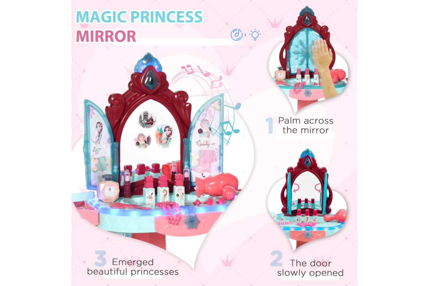 Kids will feel like a real princess, thanks to this AIYAPLAY playset. There's a switch at the back – turn It on and wave your hand in front of the mirror, and watch the doors slowly open with sounds and lights, whilst three princesses appear on the mirror, making it magical. It comes with exciting accessories, such as a hairdryer, rings, nail polish and more – perfect for roleplaying games, keeping them happy. Colourful and vibrant, it'll capture their imagination – a place for endless fun.