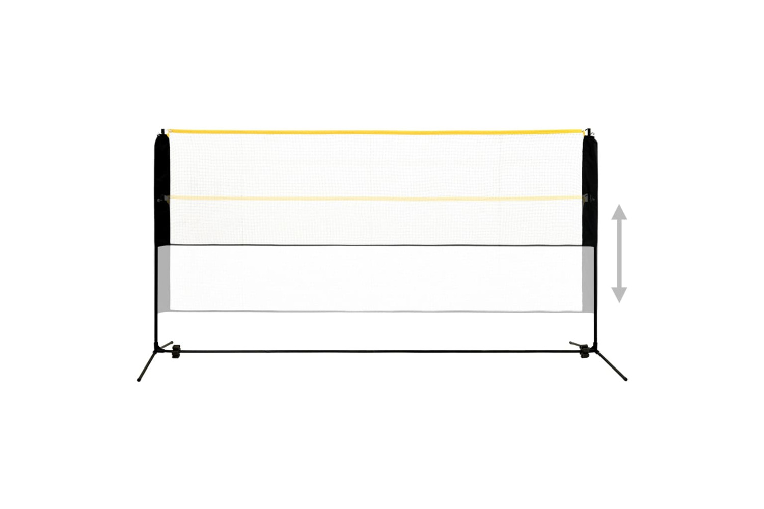 This outdoor badminton net features a steel frame, making it sturdy and durable for long-term use. The surface of tubes is painted in black, protects the metal underneath, therefore rust-resistant and weather-resistant. The net is made from durable polyethene that is very secure, preventing the shuttlecock from passing through the mesh. The net can be set up or dismantled in minutes without the need for tools. It is also adjustable in height, applying to different kinds of sports on the beach, backyards, parks and even garage. With the included carrying bag, you can easily take the net with you wherever you go!