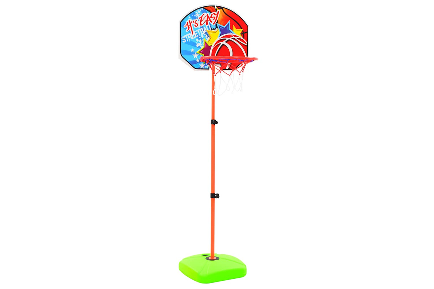 Additionally, the basket stand is height adjustable and the base makes it stand firmly on the ground once filled up with water or sand. This toy set is supplied together with a lightweight, inflatable basketball.