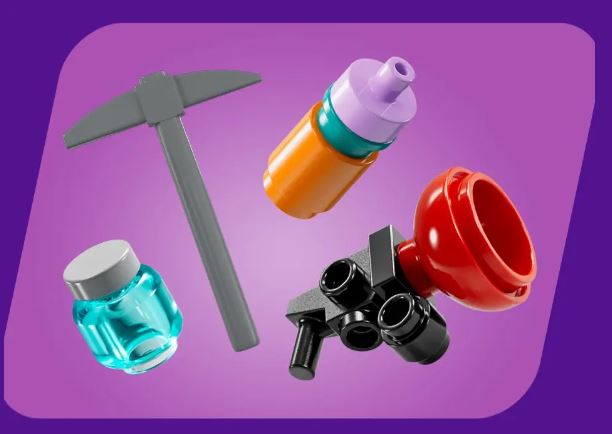 The video game building set features accessories that include slurp juice, a grappler, pickaxes and slap juice.