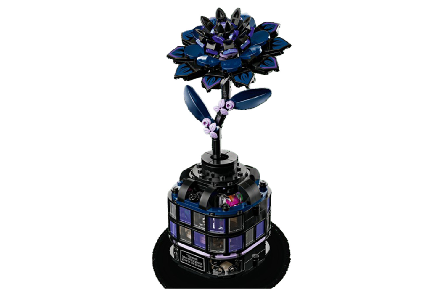 Featuring a buildable black dahlia flower in a vase, this 358-piece set measures over 23 cm (9 in.) high, 10 cm (4 in.) wide and 9 cm (3.5 in.) deep when closed