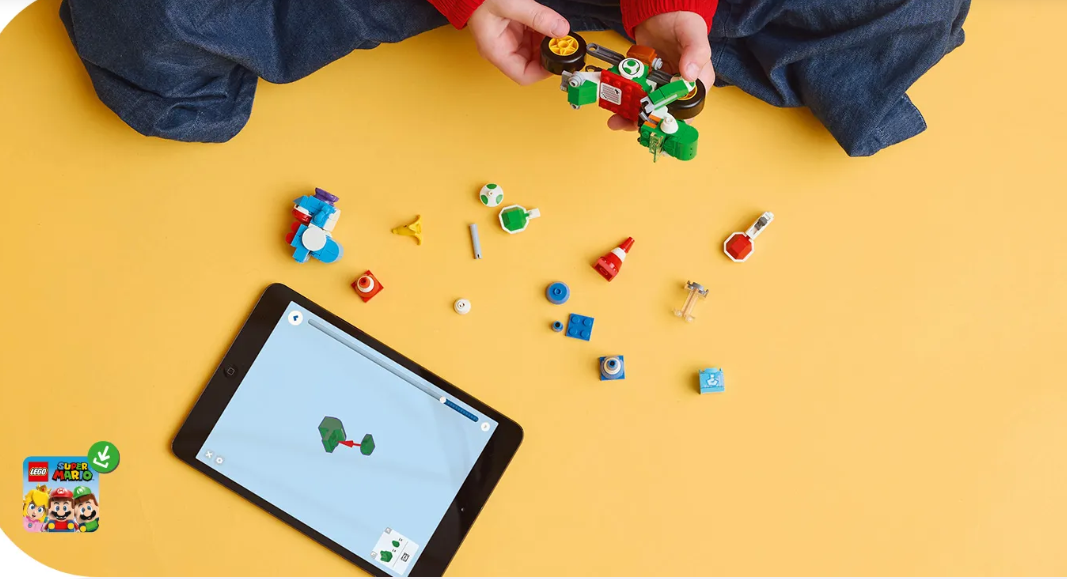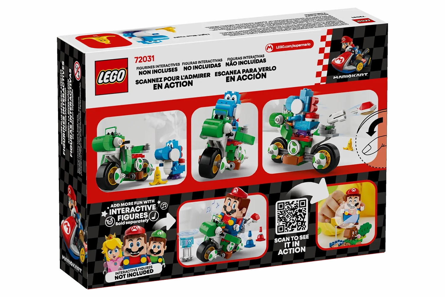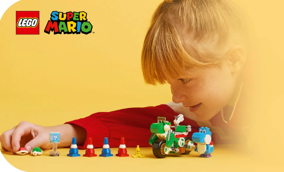 Gear up for exciting drive-and-drift Mario Kart action on the Yoshi Bike with this buildable toy playset for kids.