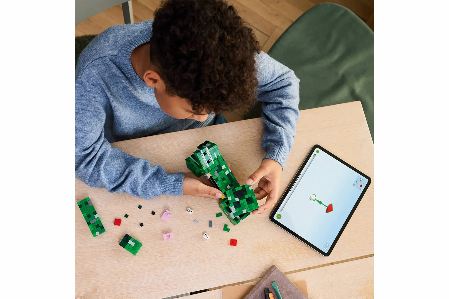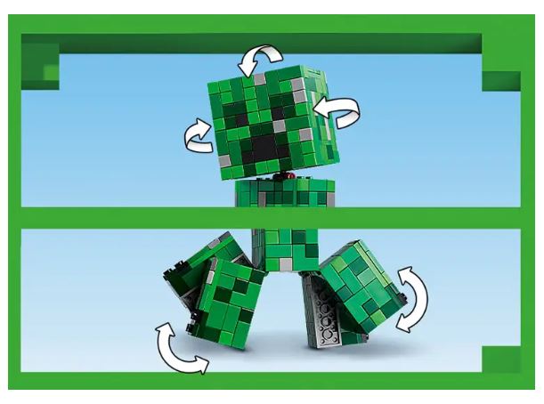 This build-play-and-display Creeper has movable legs and a posable head that moves from side to side and tilts up and down.