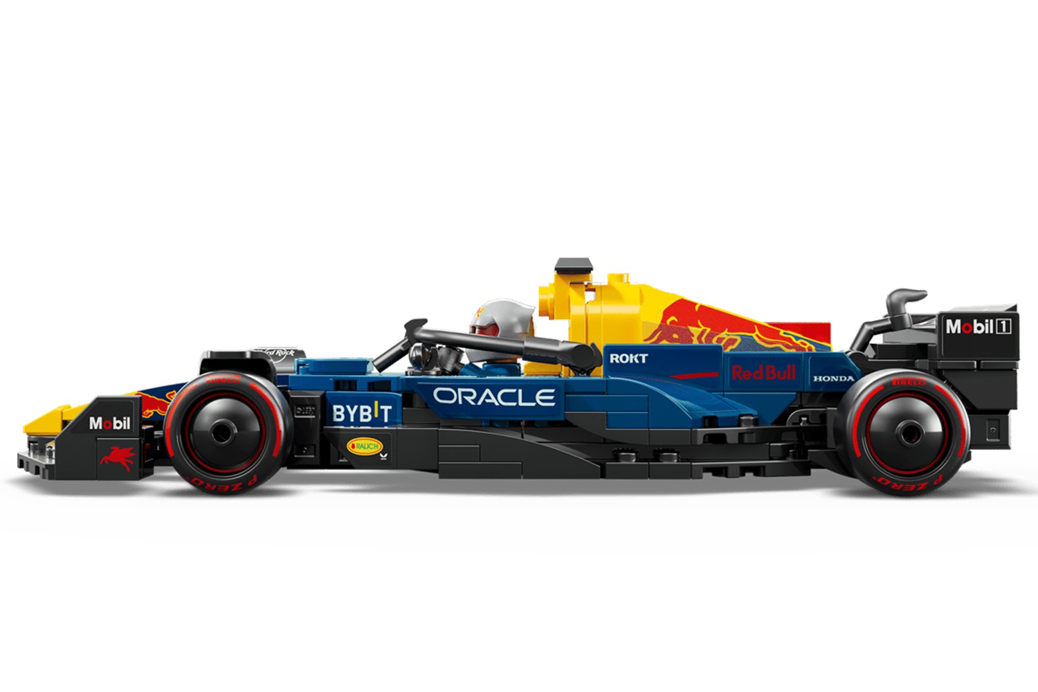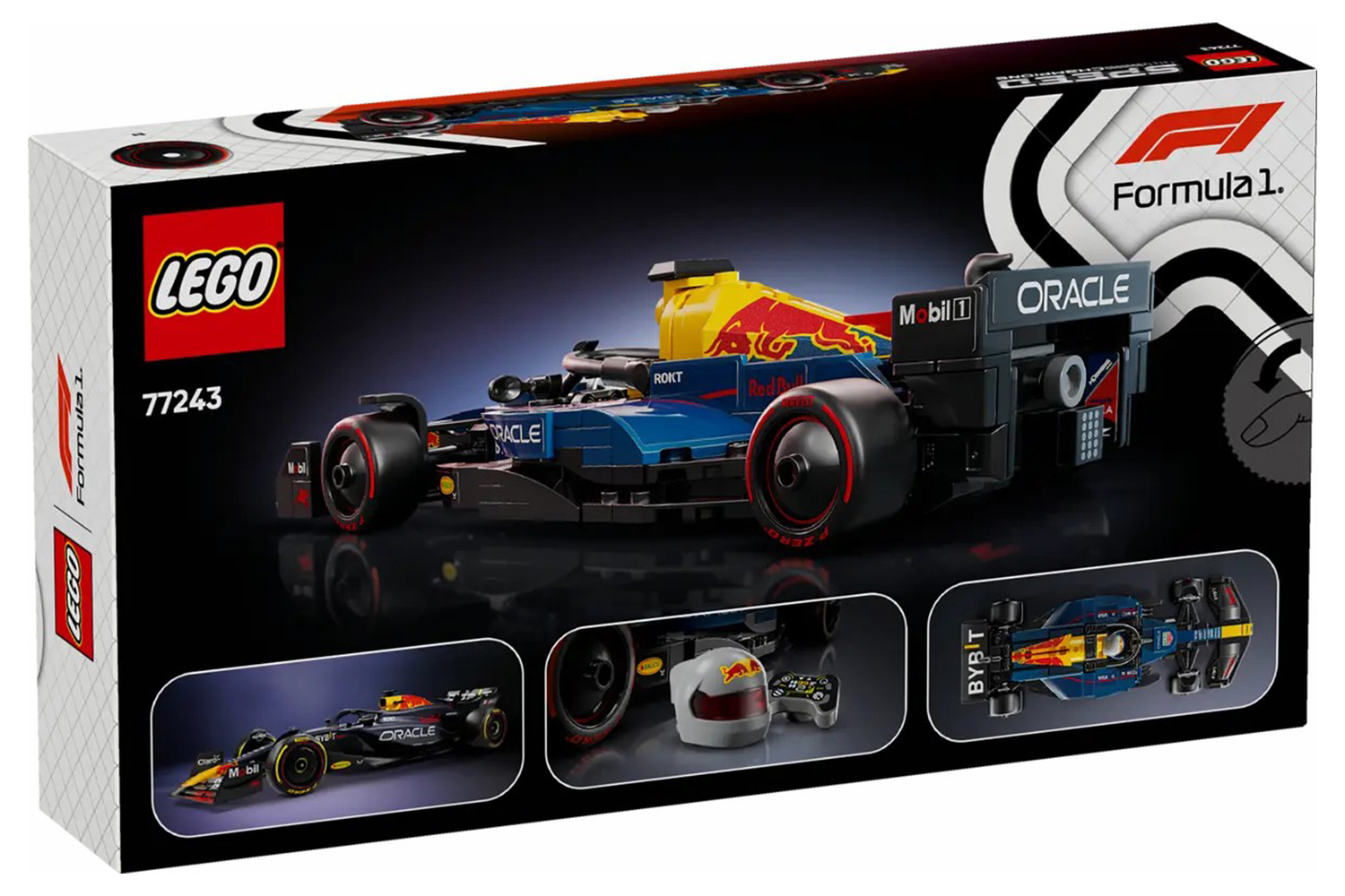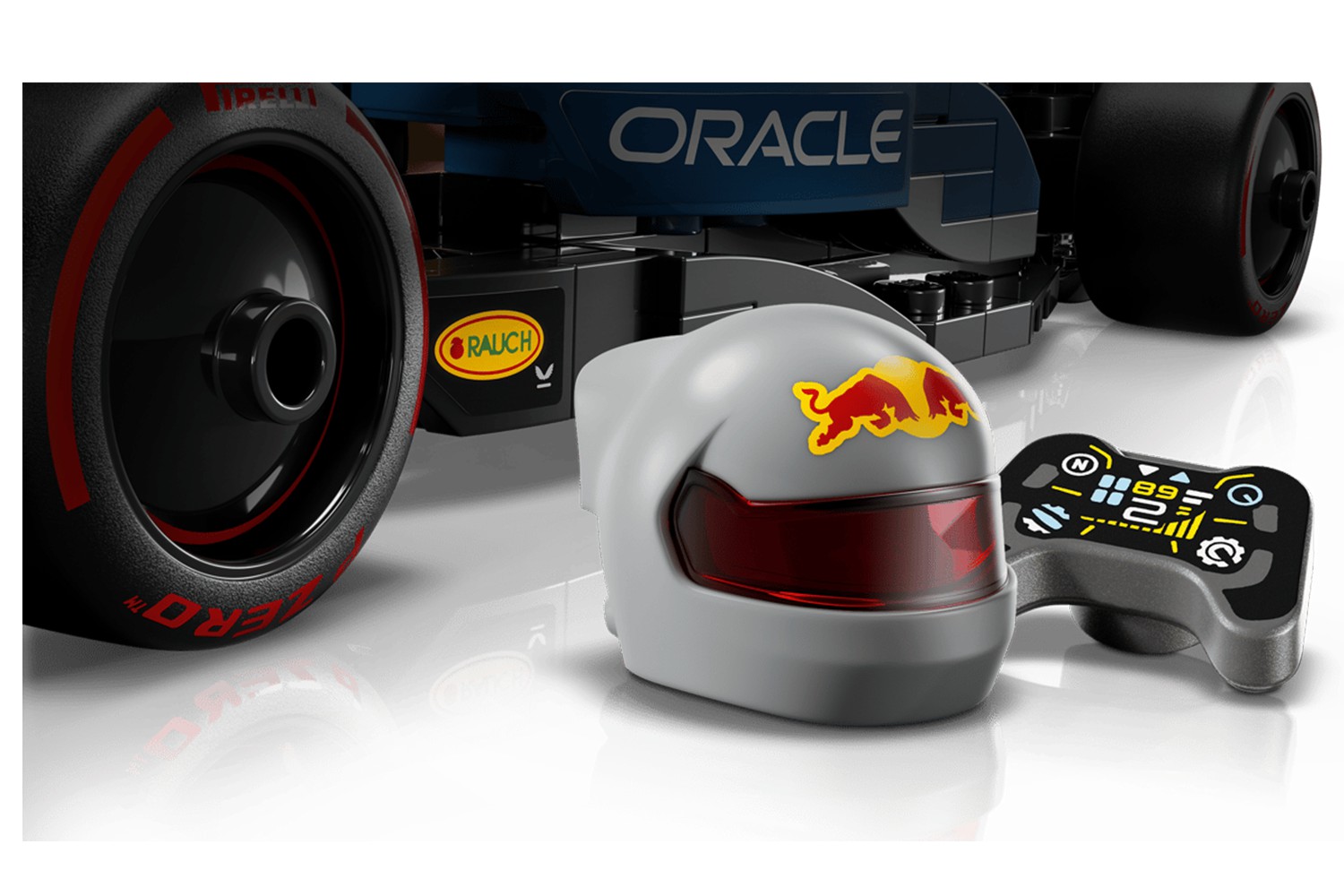 Explore the F1 model car’s incredible features, including a cockpit that opens by lifting the halo bar, a rear wing, wishbone suspension, sponsor stickers and wider rear tires imprinted with “Pirelli.” The vehicle kit also comes with an F1driver minifigure wearing a Red Bull outfit and a winged helmet to place inside the cockpit. Once completed, the F1 model car looks great on display.