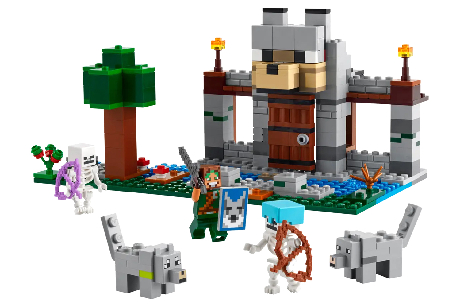 • Minecraft wolf toy: The entrance to the Wolf Tamer’s base features a large, buildable wolf’s head with a face that kids can quickly switch from friendly to angry