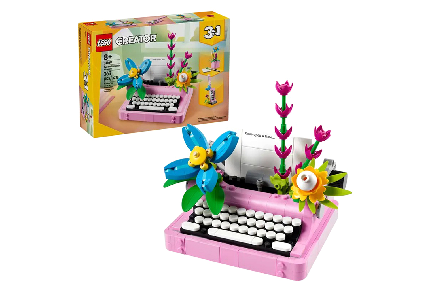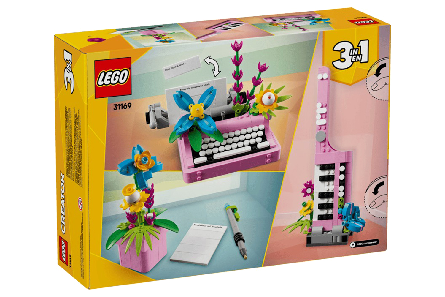 Creator 3 in 1 Typewriter with Flowers toy playset lets kids aged 8 and up build and rebuild 3 different models with the same bricks.