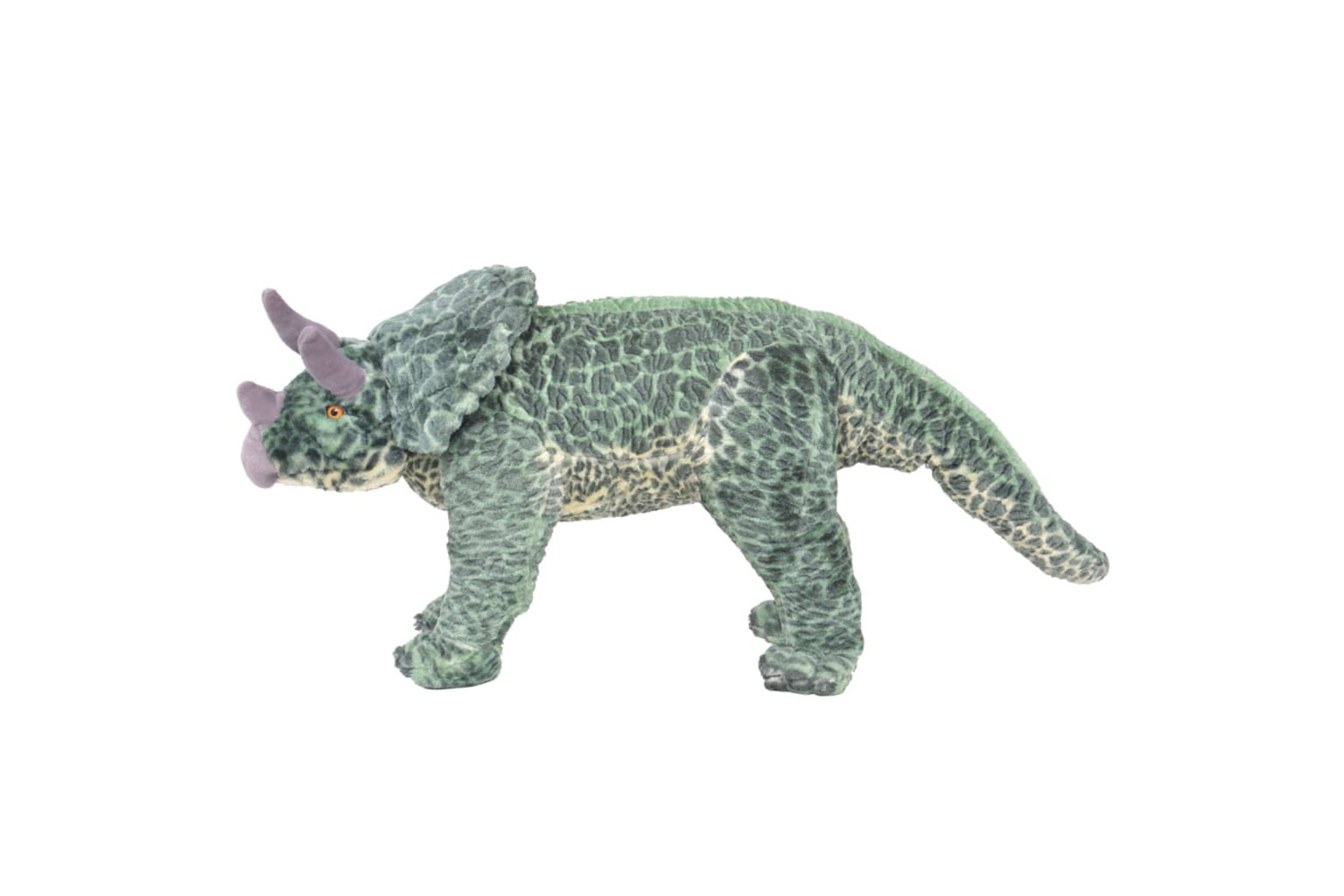 This soft and cuddly toy with detailed features consists of a sturdy steel frame and high-quality plush fabric. The toy can carry up to 100 kg so it can be used as a sit-on toy or a chair. Our plush Triceratops will be a great friend for children!