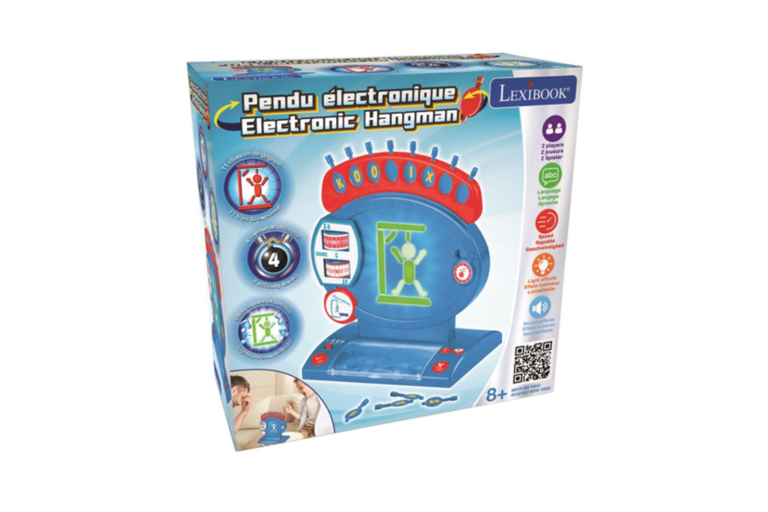 Light-up hangman shows the remaining chances. Light and sound effects to help you during the game.