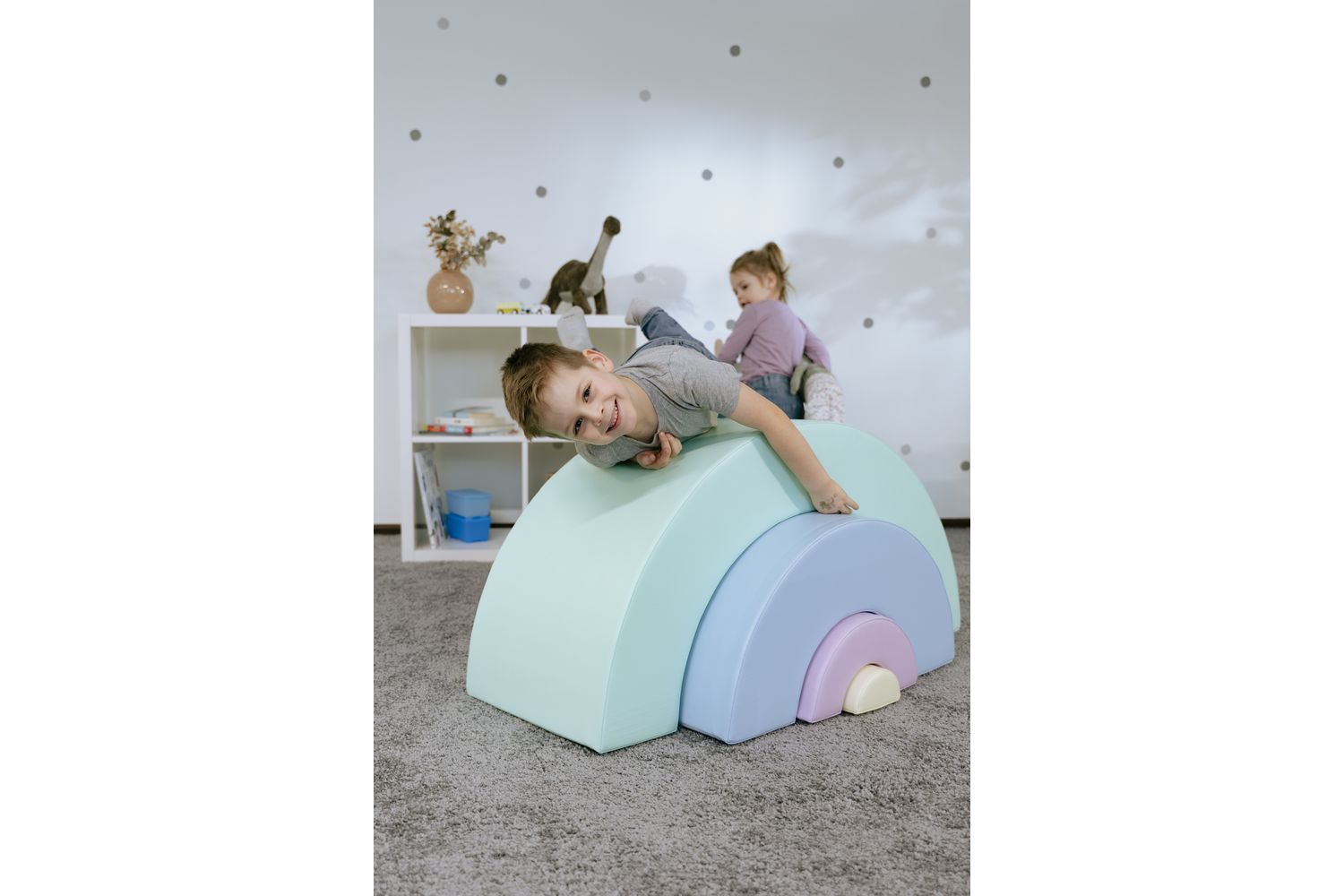 Wont it be a delight to see pets joining in the fun, or sneak in a whimsical creativity break for adults by letting these blocks double up as, say, a hip computer stand? IGLU's iconic Soft Play Shapes Rainbow Settangible, versatile, and truly original.