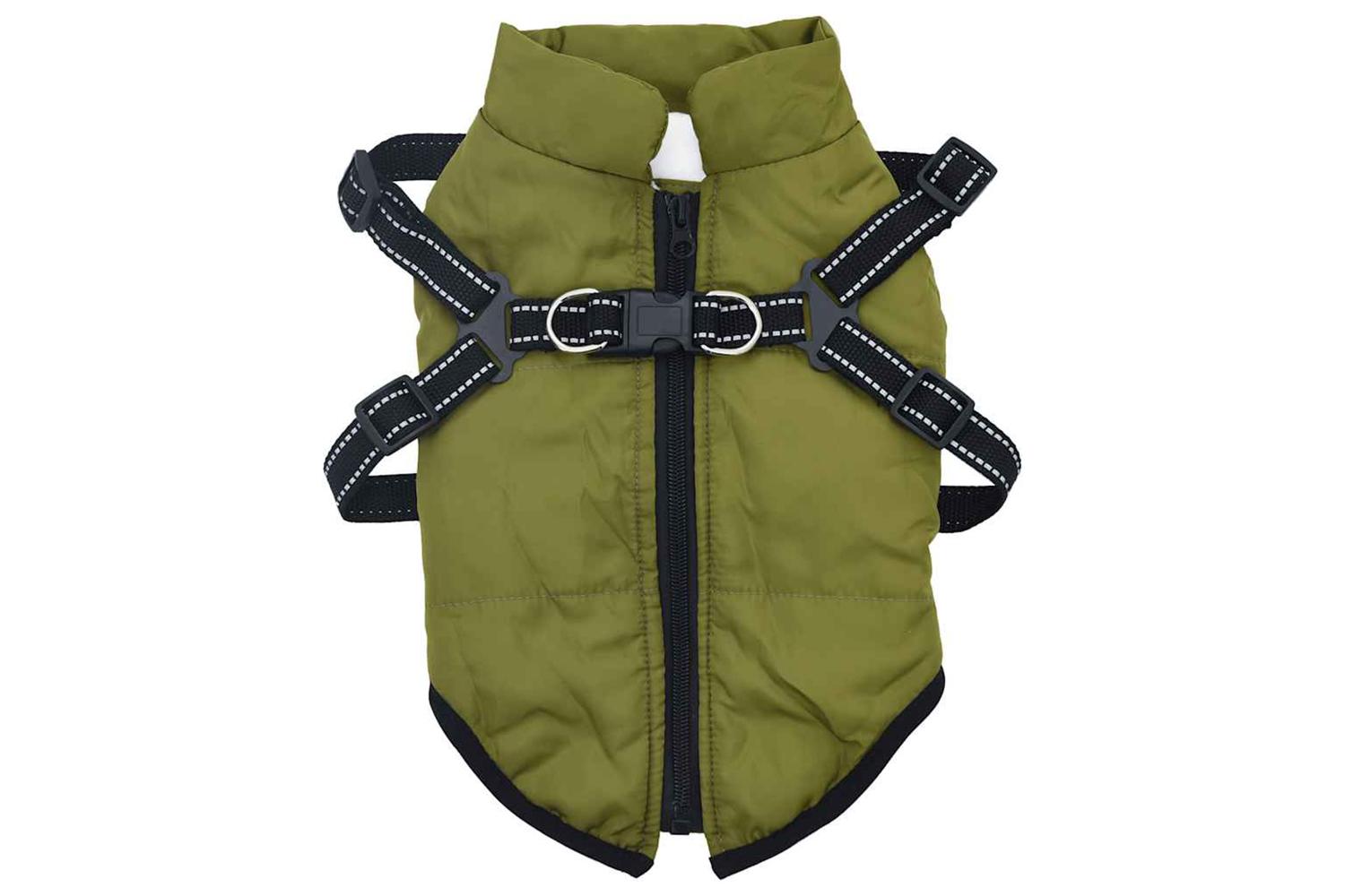 Keep your dog warm on cold days with this cosy dog coat with a built-in harness!