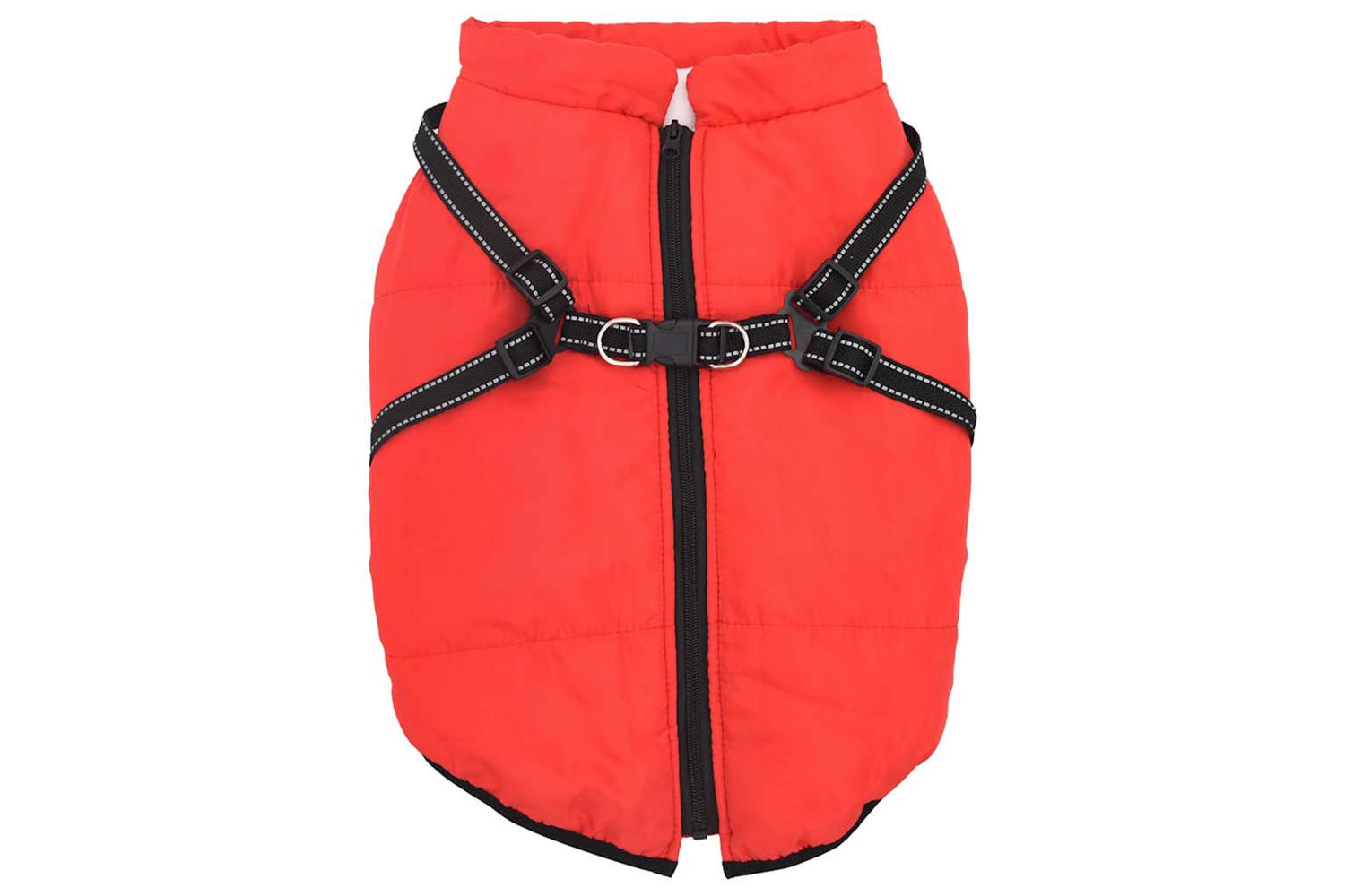 Keep your dog warm on cold days with this cosy dog coat with a built-in harness!