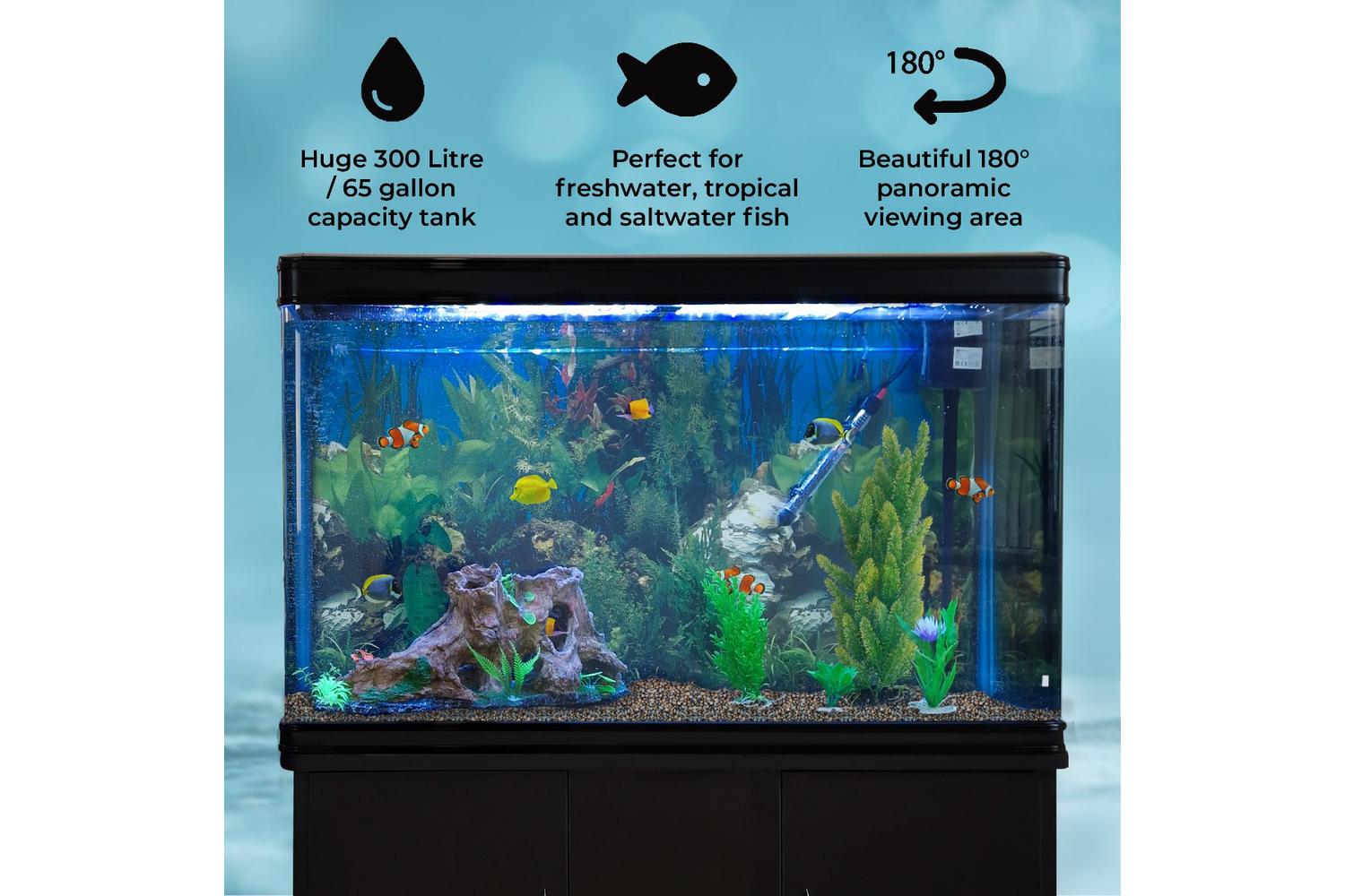 - 300L Capacity black trim tank with 11mm thick glass
