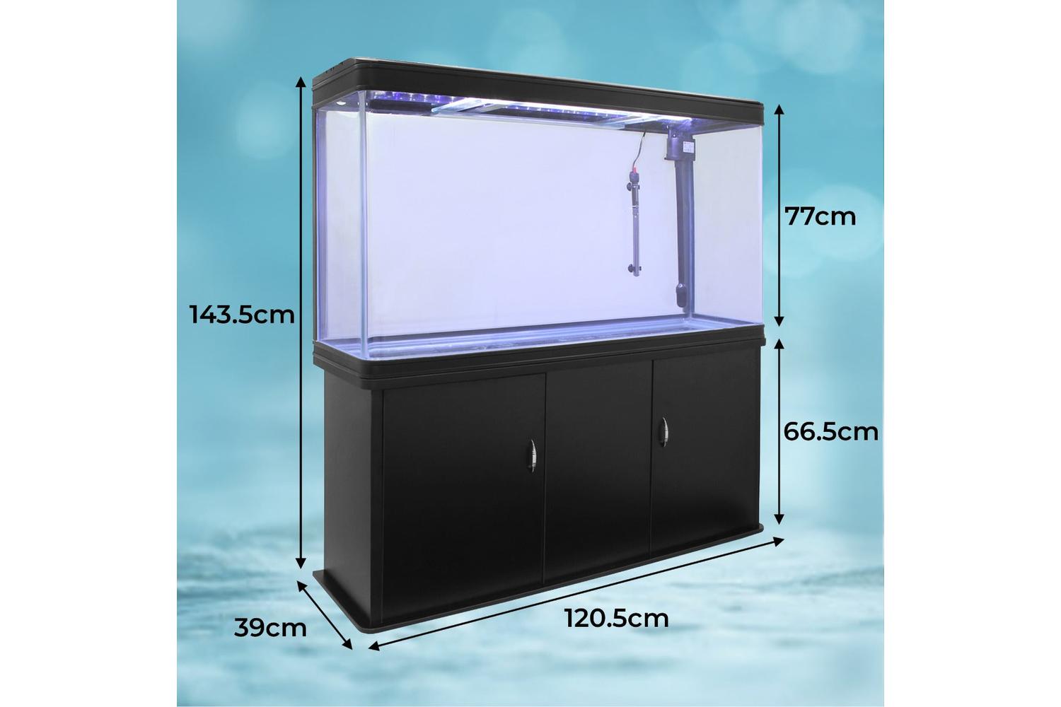 - Cabinet and tank: 143.5cm H x 120.5cm W x 39cm D