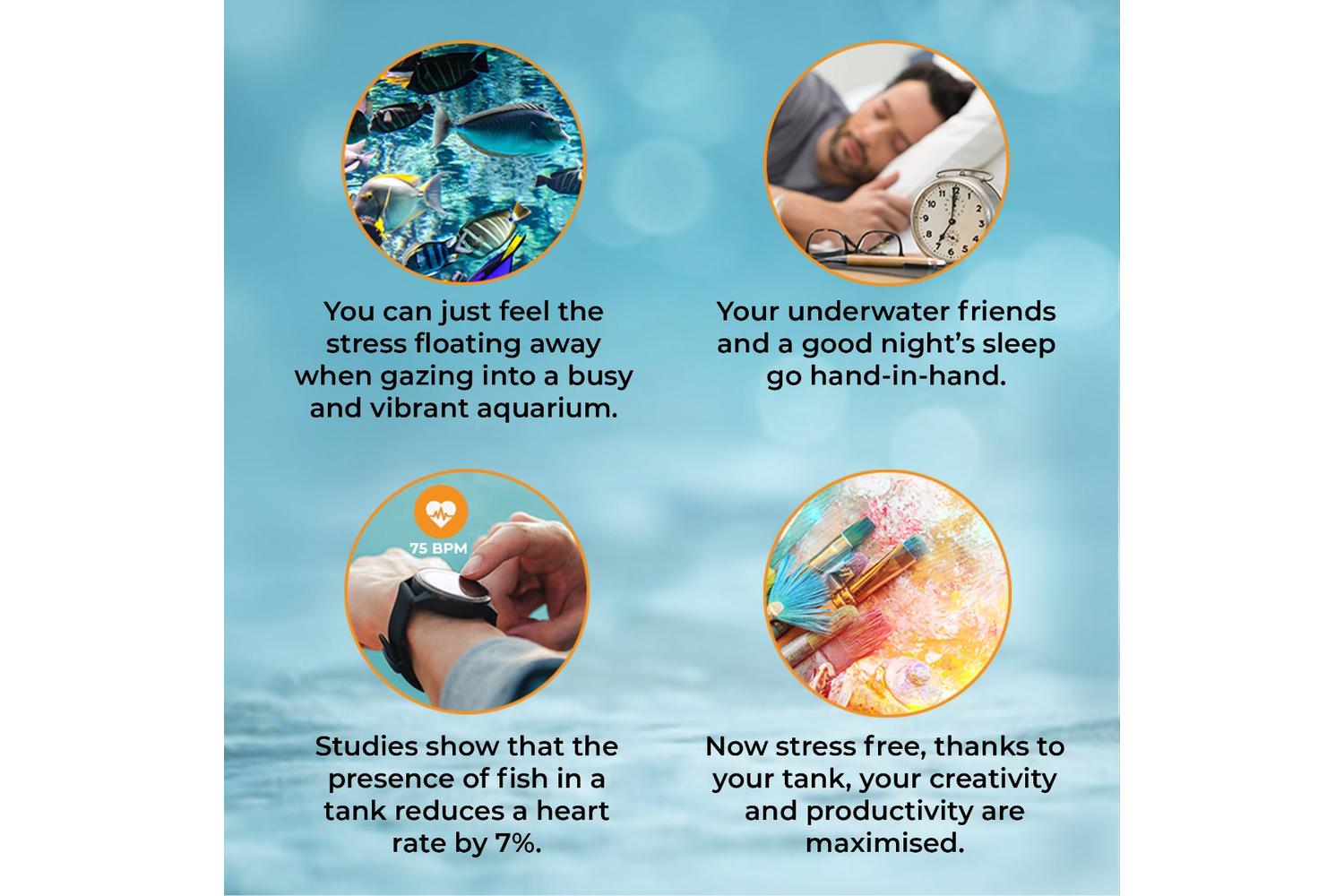 - Curved edges of the tank create uninterrupted 180 degree views