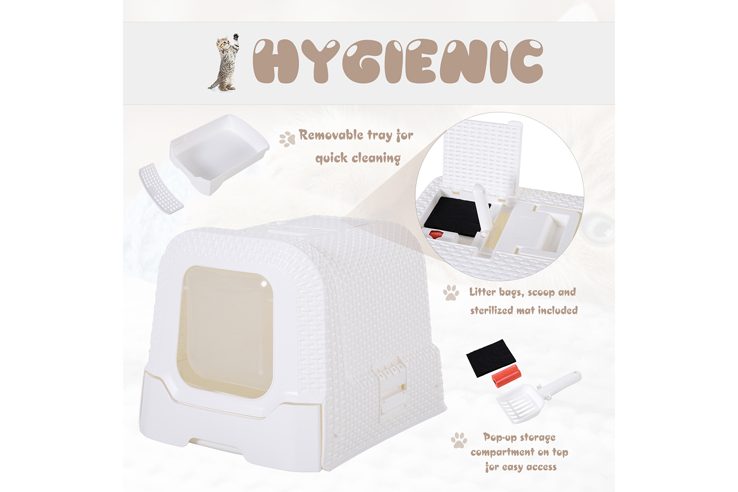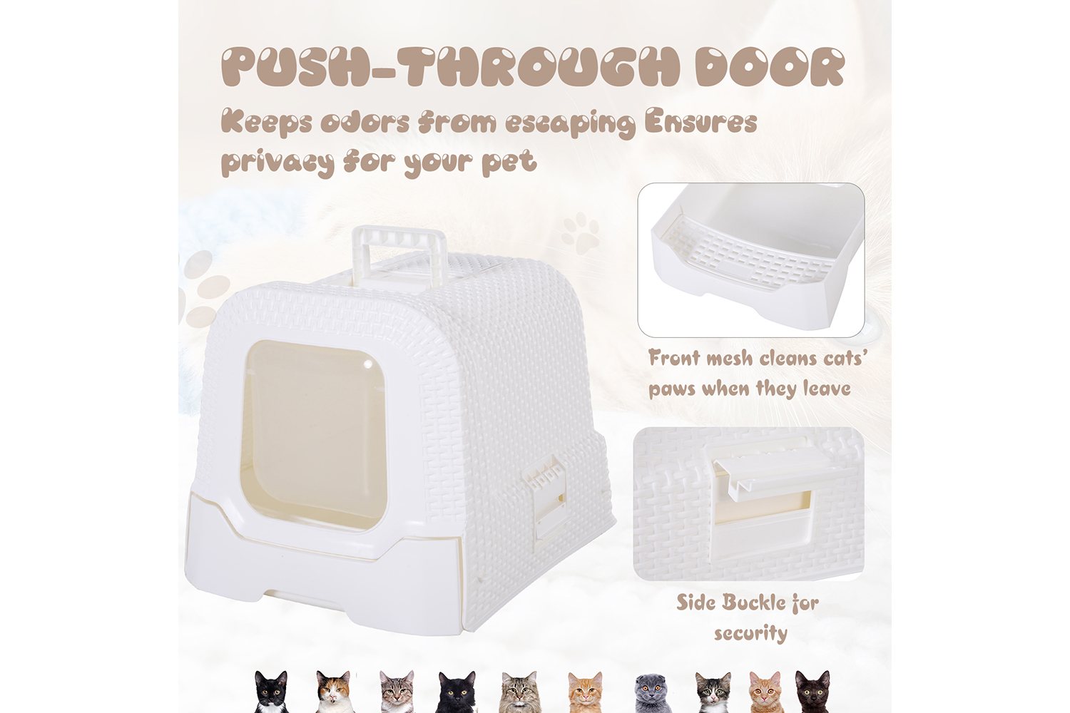 PawHut D31-002WT Large Cat Litter Tray Box With Scoop