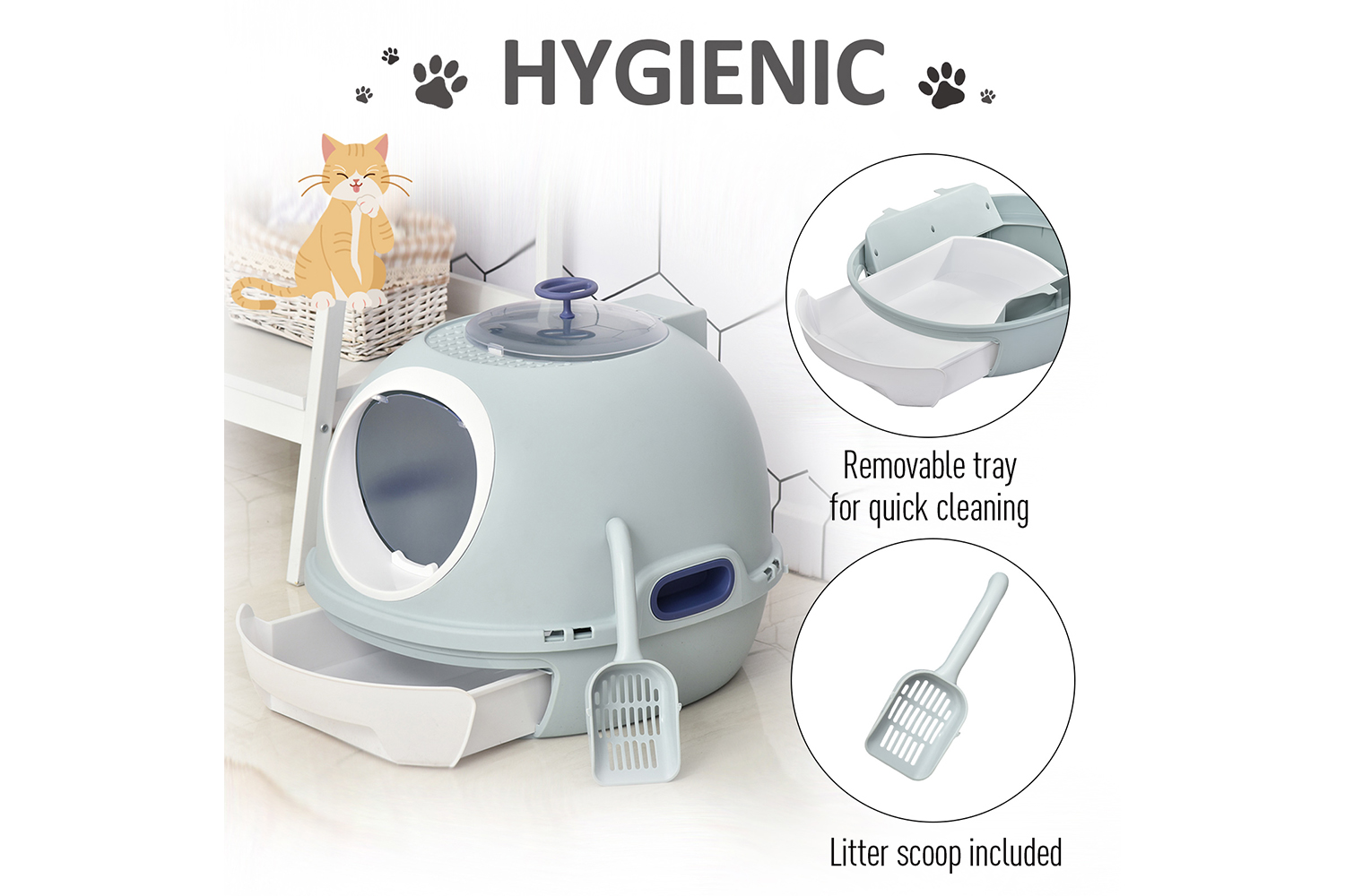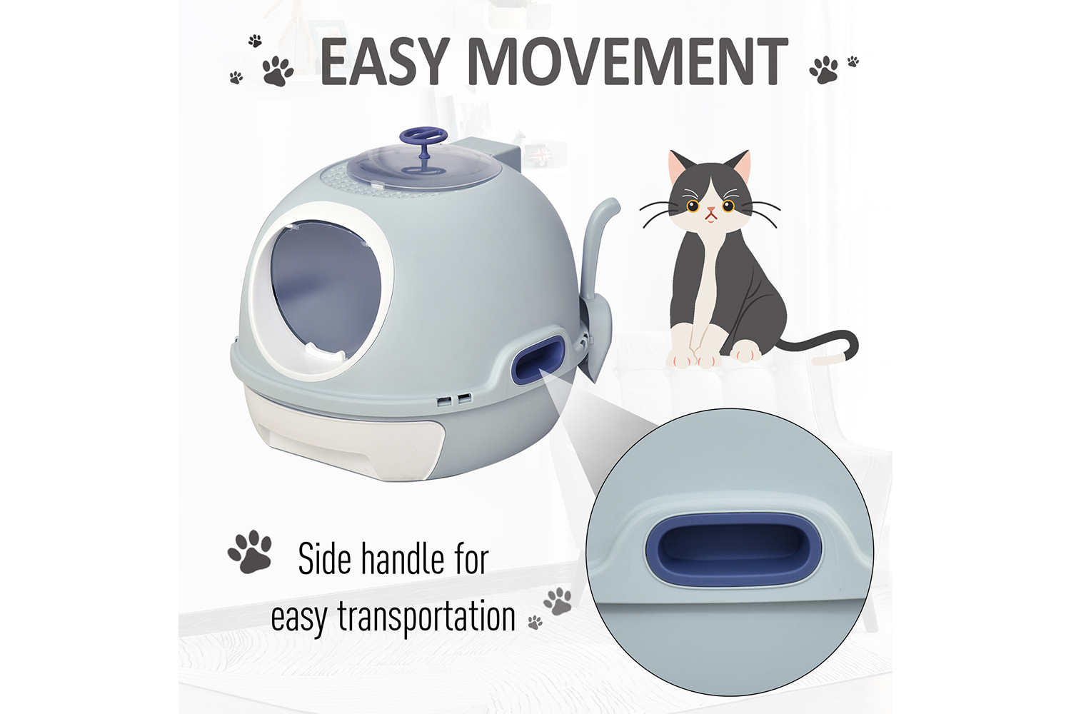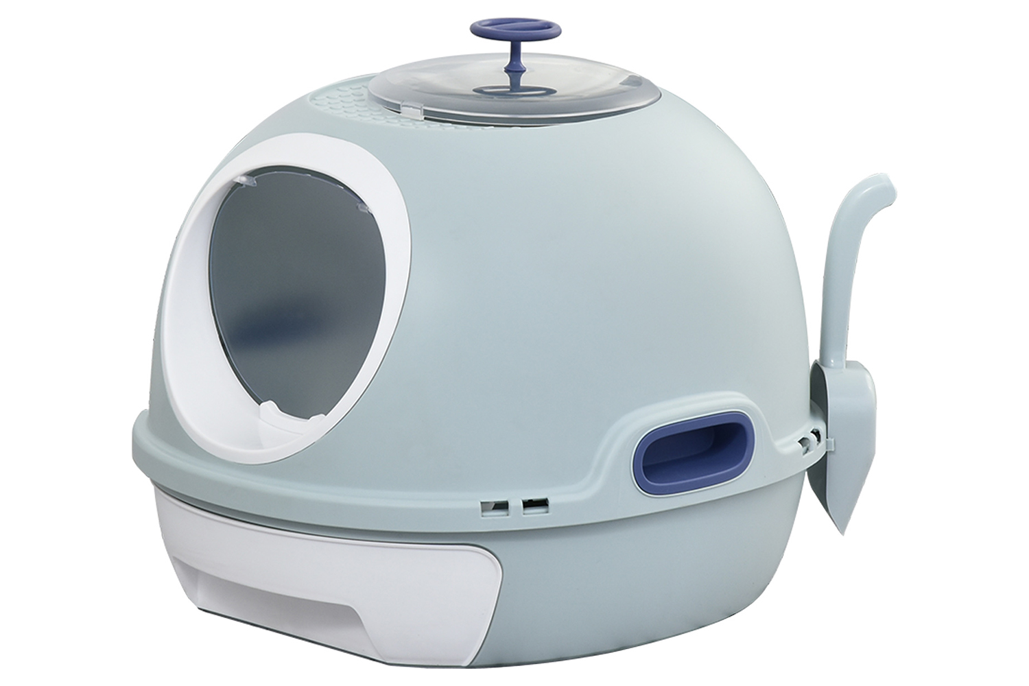 PawHut D31-012BU Cats Rooftop Plastic Litter Box | Blue
