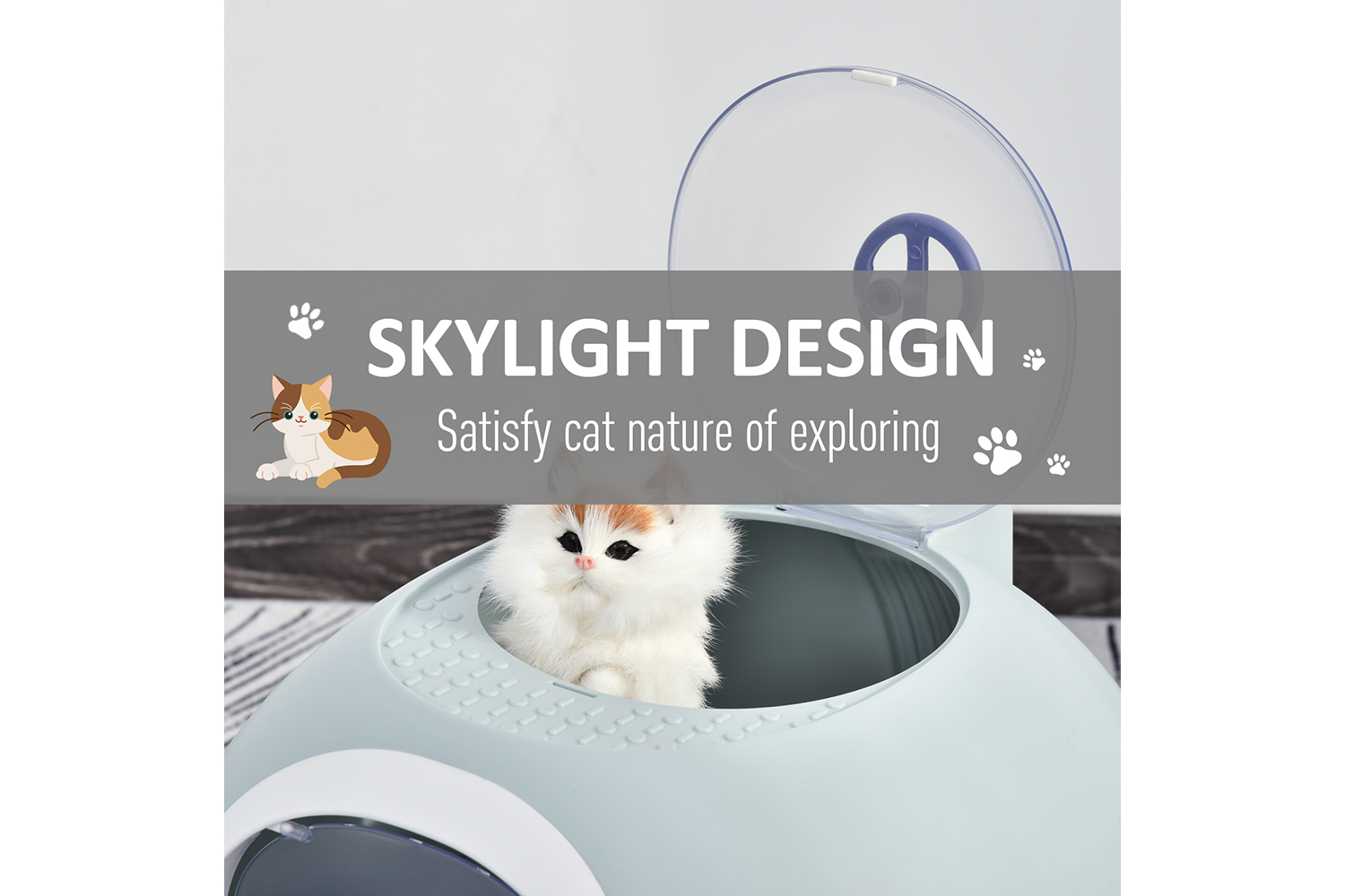 • This cat litter box with skylight for easy access for cats and increased brightness
