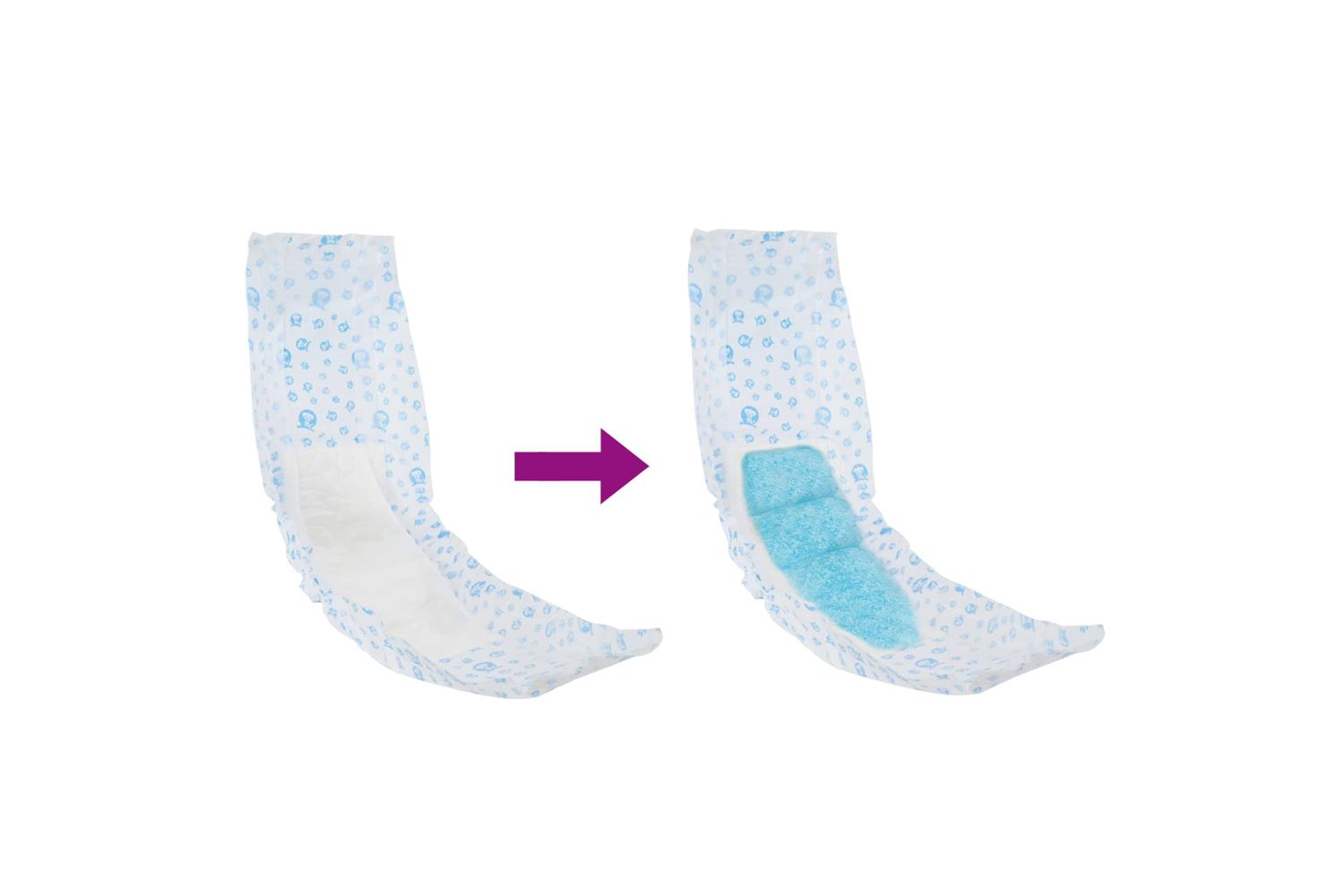 - Material: Non-woven top sheet, tissue paper, fluff pulp, super absorbent polymer , pe film back sheet