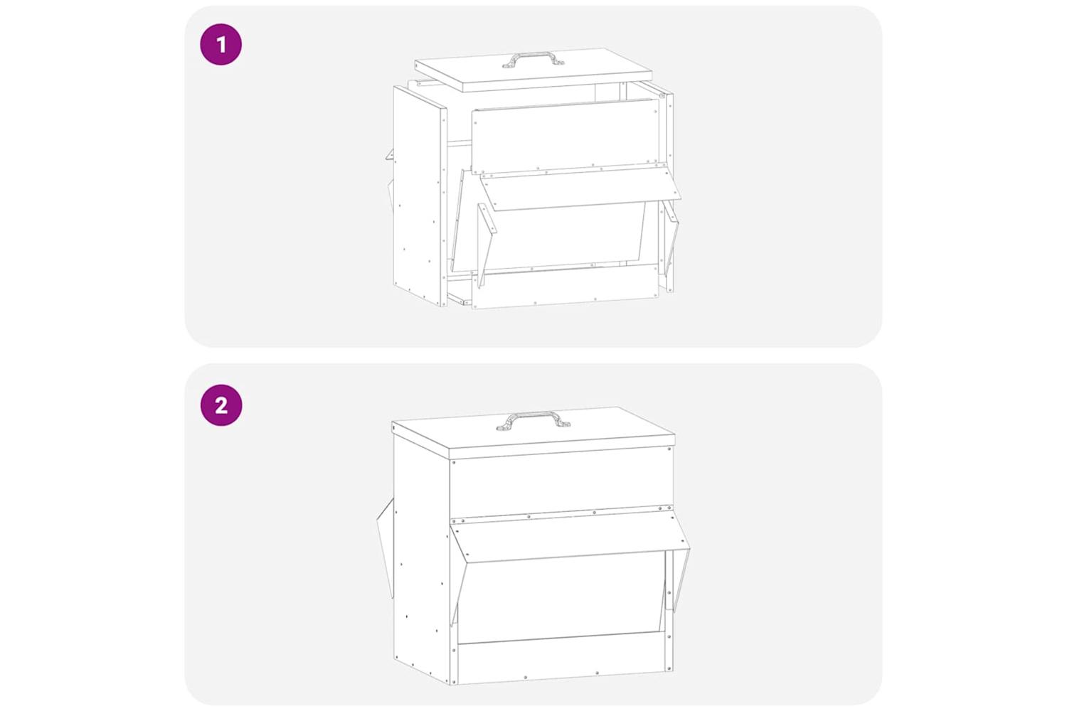 - Included Components This feeder features a secure canopy that guards the feed against rain and sun. Additionally, the design includes a convenient lid handle, offering ease of access when refilling or cleaning the apparatus.