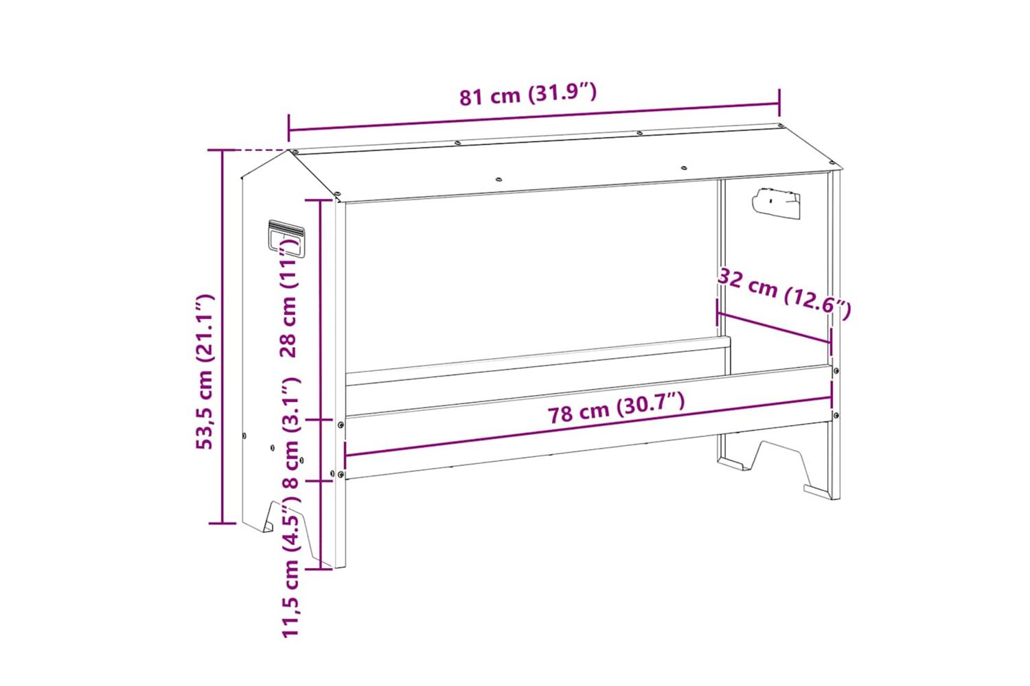 - Overall dimensions: 81 x 32 x 53.5 cm (L x W x H)