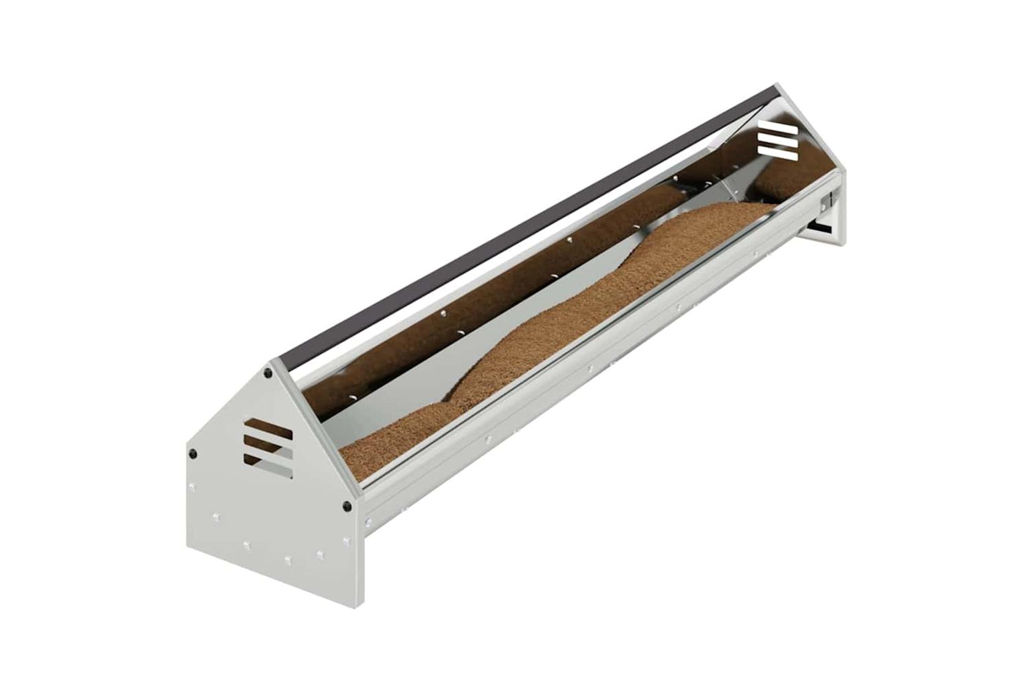 - Steel Construction: Made from solid steel, this chicken feeding trough is built with long-lasting durability in mind. Its rugged construction provides stability and can withstand the rigors of daily use, making it a reliable addition to your poultry farming setup. The steel material also offers a clean, modern appearance that complements various outdoor spaces.