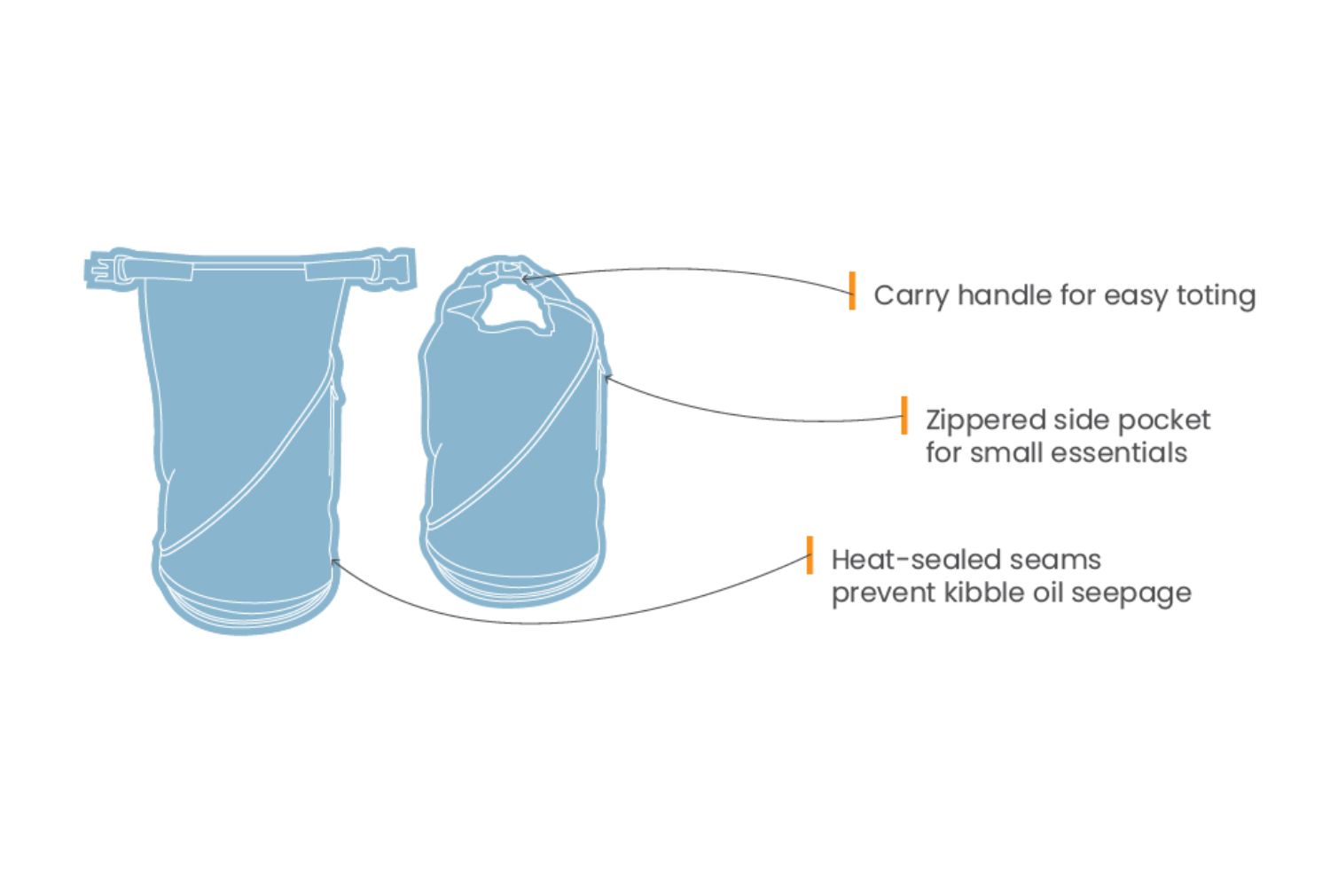 - The Kibble Carrier is constructed from tough ripstop material, so your dog can rest easy knowing her kibble is safe and all is right with the world
