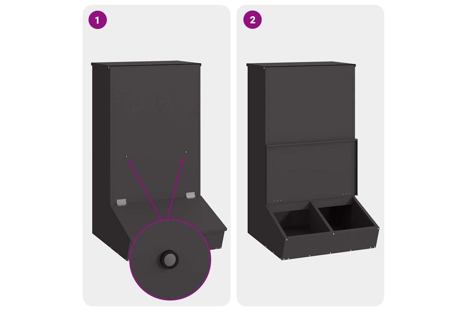 - Easy Access Doors Equipped with single or multiple door options fitted with magnets, allowing effortless access when needed while keeping feed secured when not in use. These doors enhance usability and ensure maintenance is a breeze, providing both convenience and security when managing feeding routines.