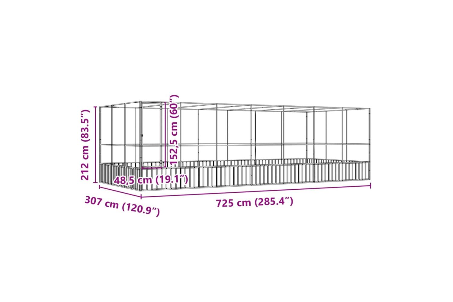 - Overall dimensions: 725 x 307 x 212 cm (W x D x H)