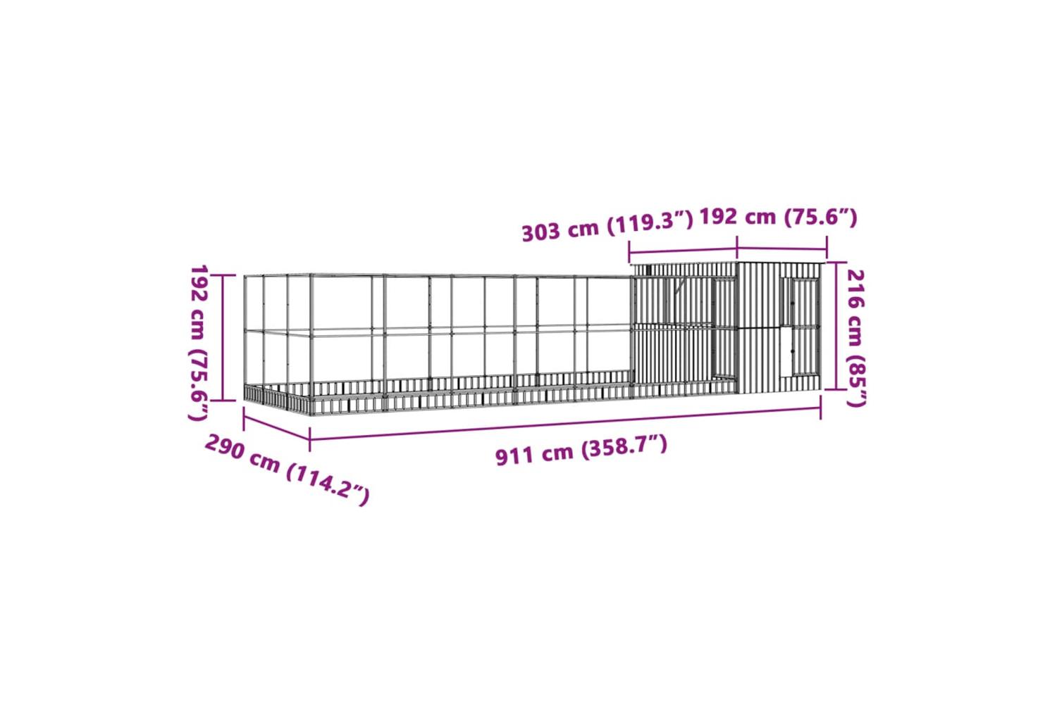 - Overall dimensions: 911 x 303 x 216 cm (W x D x H)