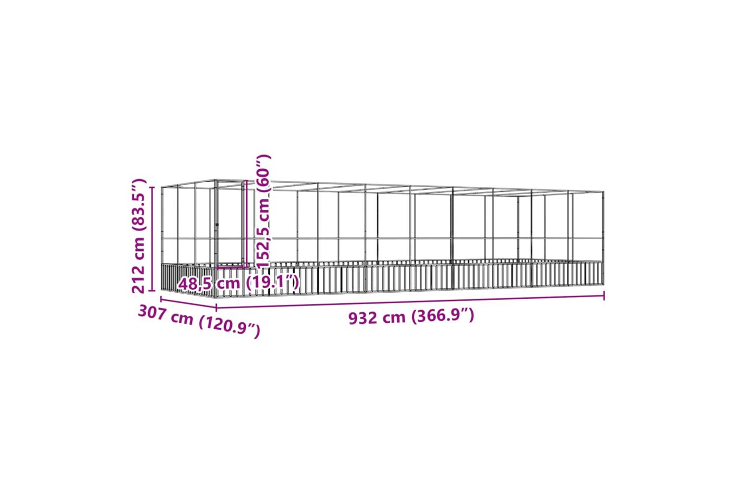 - Overall dimensions: 932 x 307 x 212 cm (W x D x H)