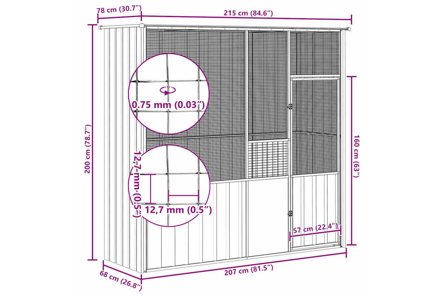 - Welded fence: The aviary is equipped with welded fence that prevents mischief and unexpected accidents. In addition, they also allow you to observe your birds daily and guarantee your birds a wide field of view and enough fresh air.