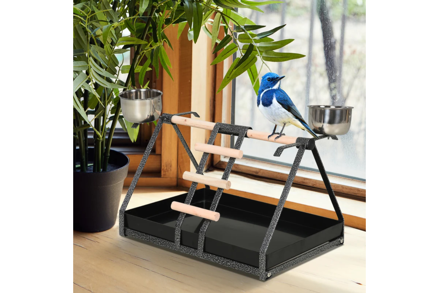 Give your bird the perfect place to perch with this stand from PawHut. Its simple design is formed of a stainless steel base which ensures the structure is balanced and steady whilst in use, with helping keep any debris collected for easy cleaning. It is fitted with a wooden top for your bird to perch on, its smooth finish ensuring safety, with two bowls included for keeping food and water close.