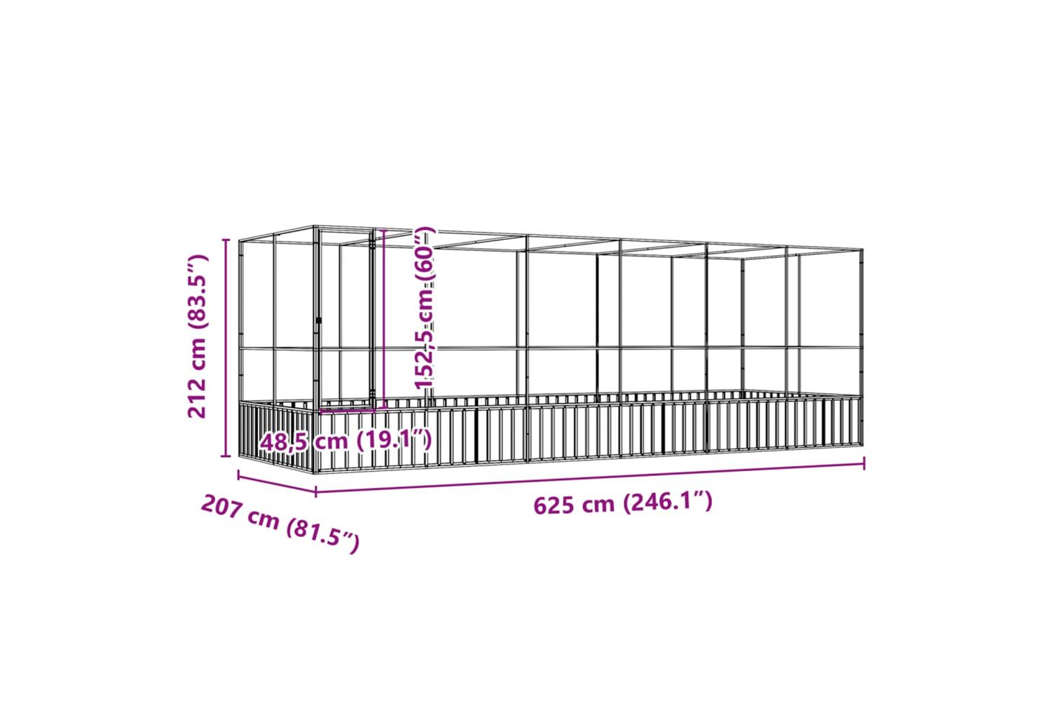 - Overall dimensions: 625 x 207 x 212 cm (W x D x H)